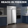 - Dual-Temp Reach In Refrigerator/Freezer: The refrigerator compartment has a temperature range of 33-41°F, while the freezer compartment can go as low as -8°F. Temperature can be easily monitored by digital temperature controller. Large capacity of 36 cubic feet, helps you organize your fresh meat, fruits, and veggies easily accessible manner. Customize your storage using the 6 adjustable shelves.