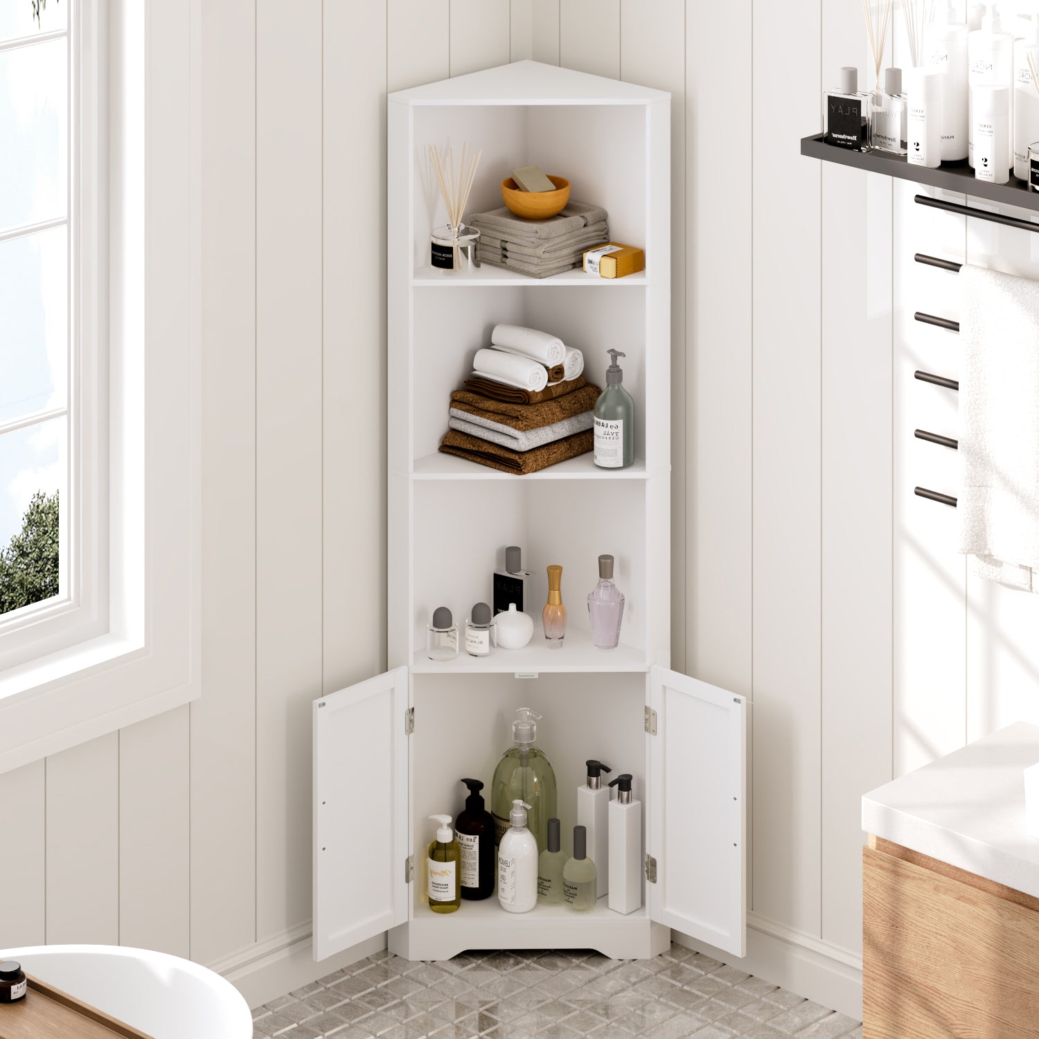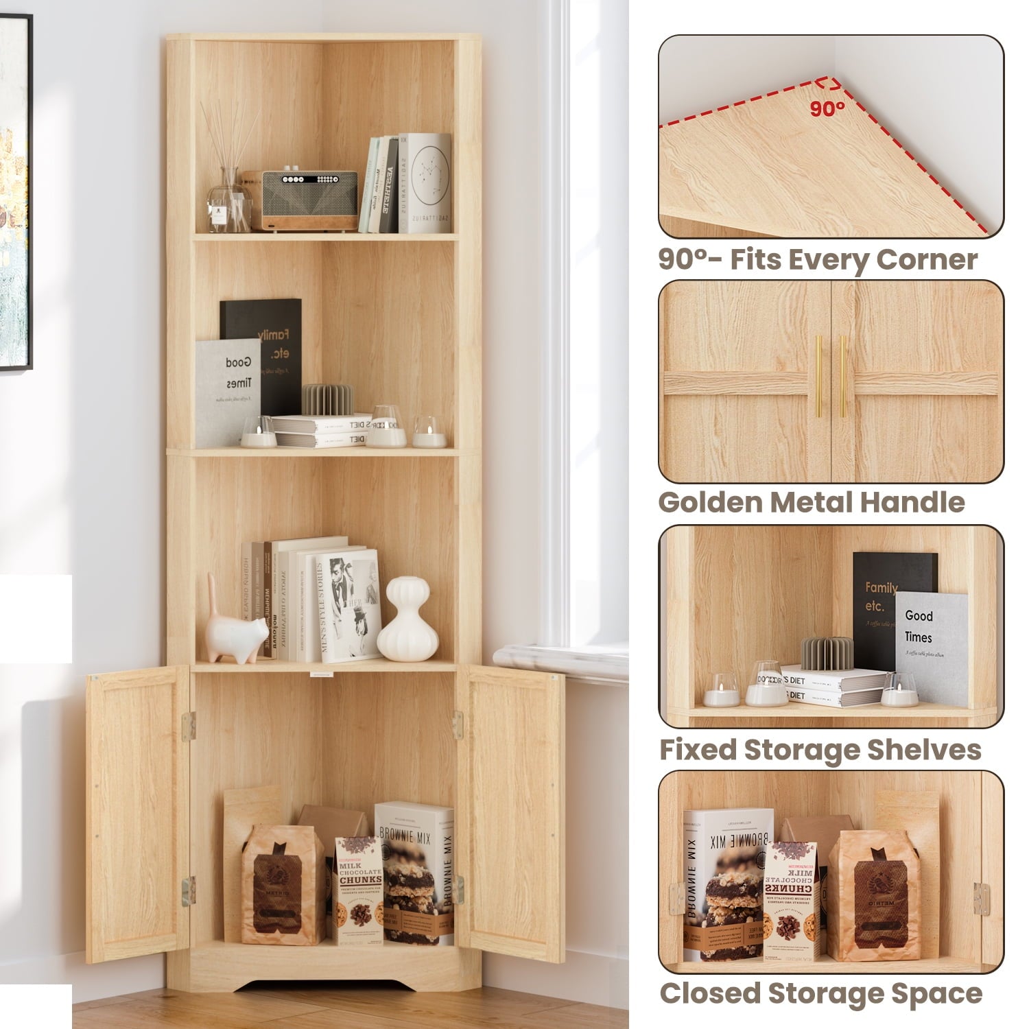 - Multifunctional Corner Storage Shelf: Take advantage of every corner of your abode with this storage cabinet, It offers ample storage and display space for your living room, kitchen, dining room, balcony, bathroom, entryway, and more