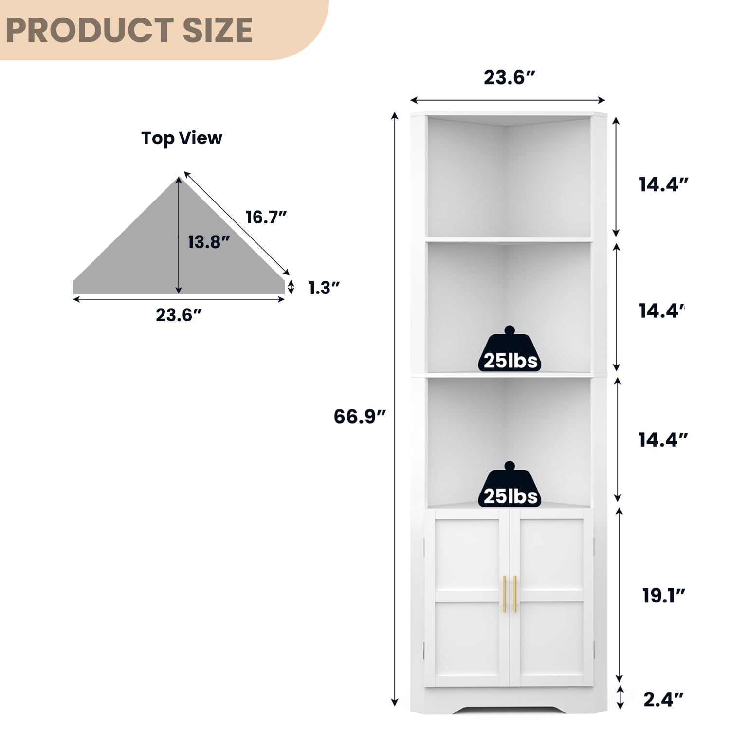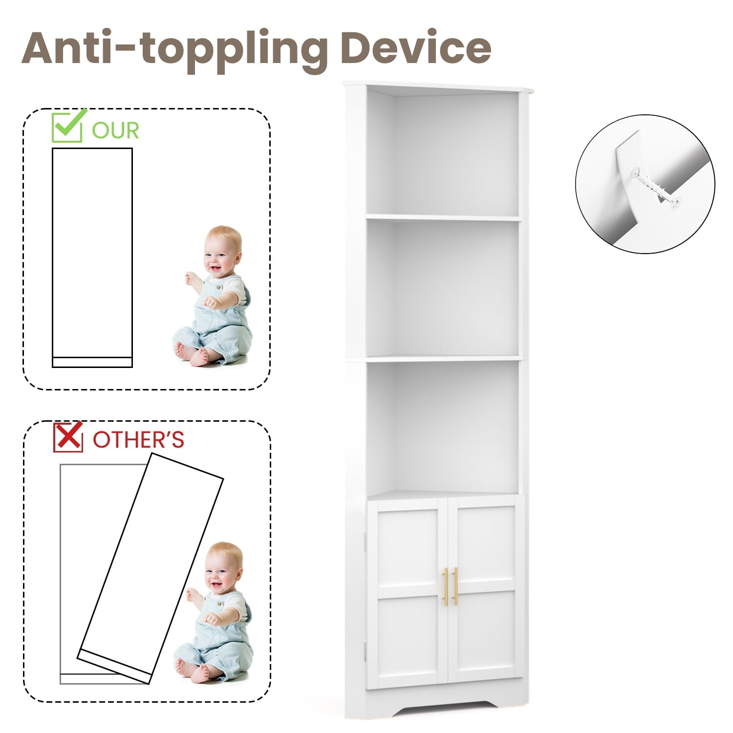 - Solid Construction: Our white modern style corner cabinet with doors is made of the finest quality raw materials. It is not only delicate in texture, but also sturdy, reliable, overall waterproof and easy to maintain. The corner cupboard is equipped with a sturdy base and anti-tipping device to maximise safety and stability