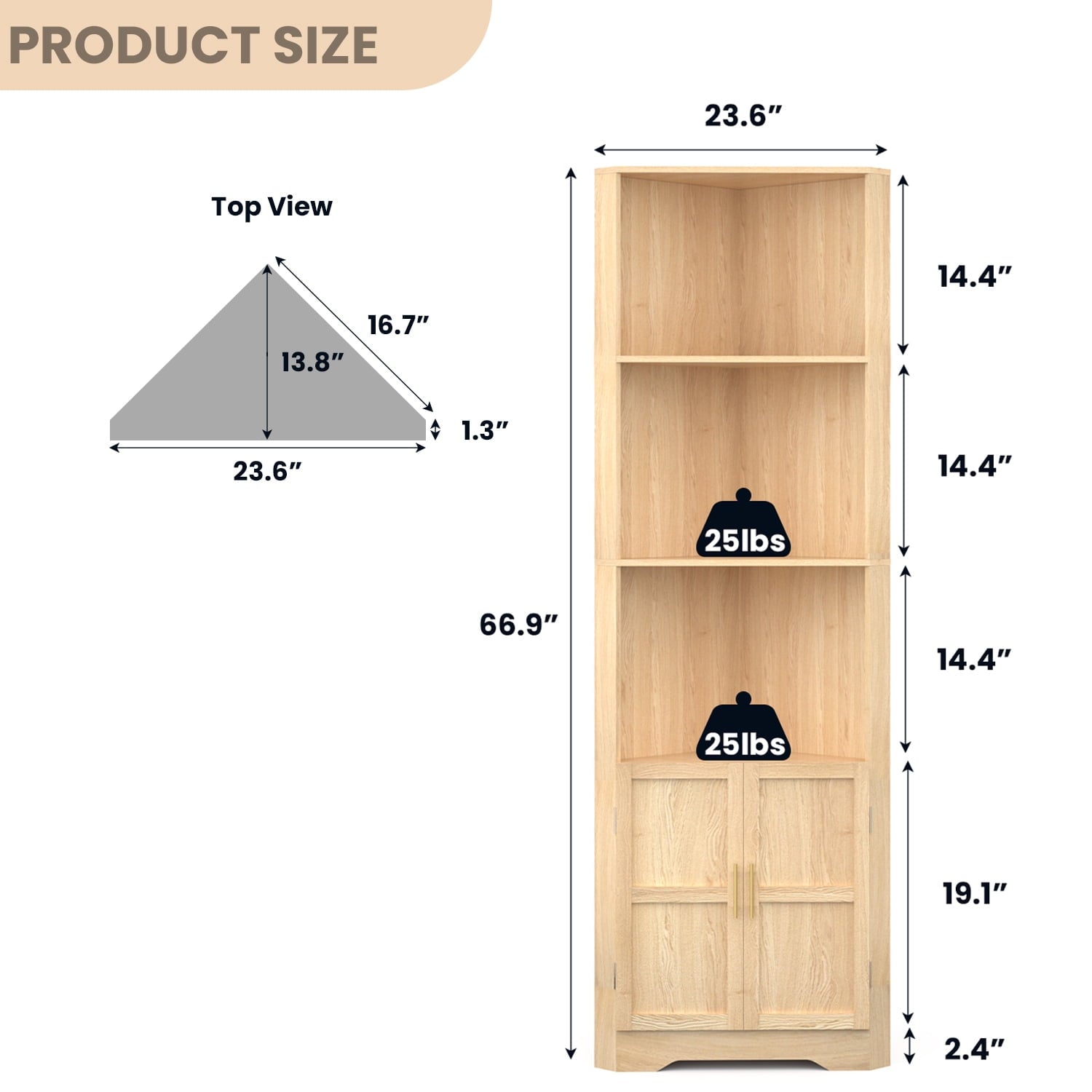 67” Tall Corner Storage Cabinet