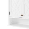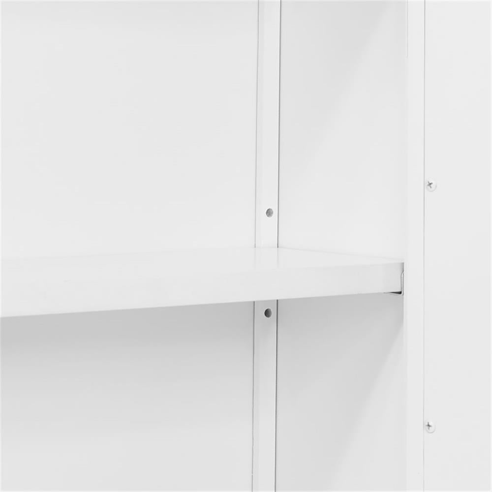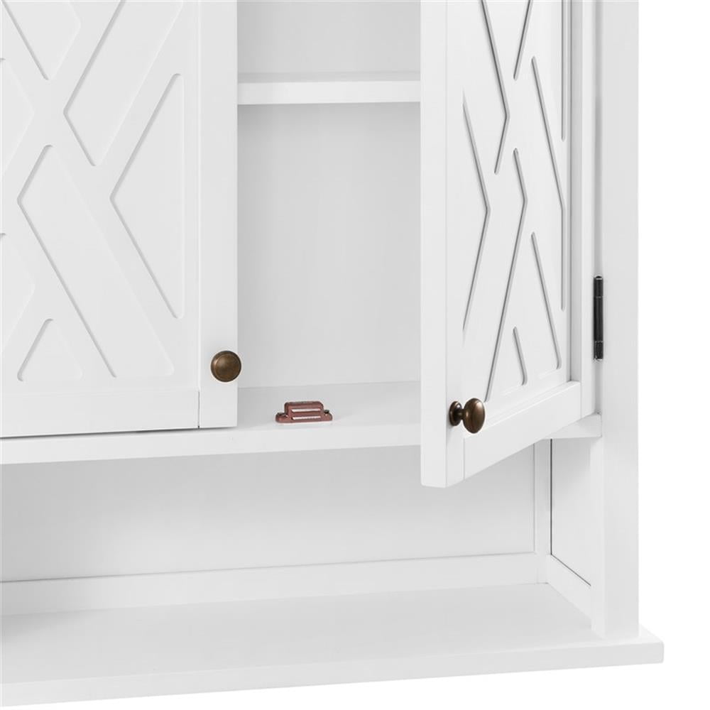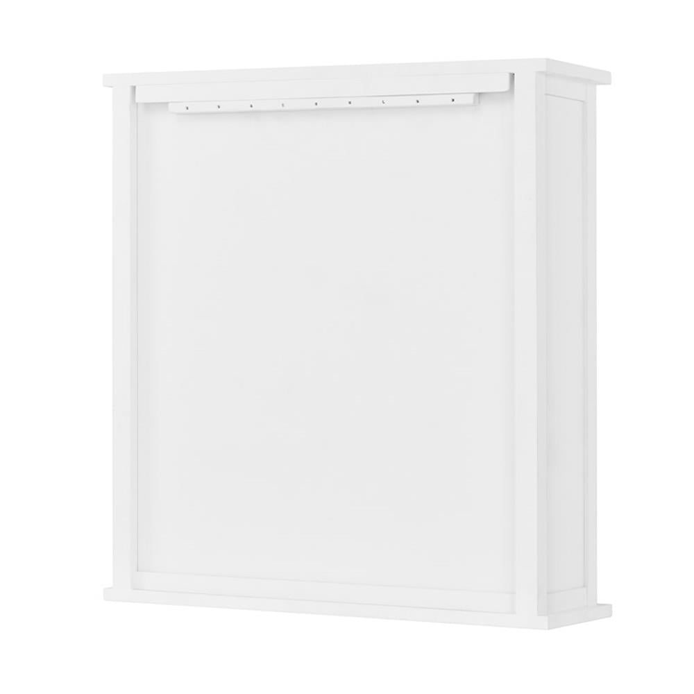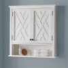 Bring style and organization to your bathroom. This collection works in a range of decorating styles- from traditional to modern with its clean lines and decorative side-element. Wood construction with a white, painted finish, these pieces are designed to create and maximize bathroom storage. This wall cabinet adds functional style to any room. Hide clutter behind the stylish cabinet doors. Perfect for storing bathroom toiletries and necessities, and displaying your favorite home decor pieces on the open shelf below. Bath collection is moisture resistant.
