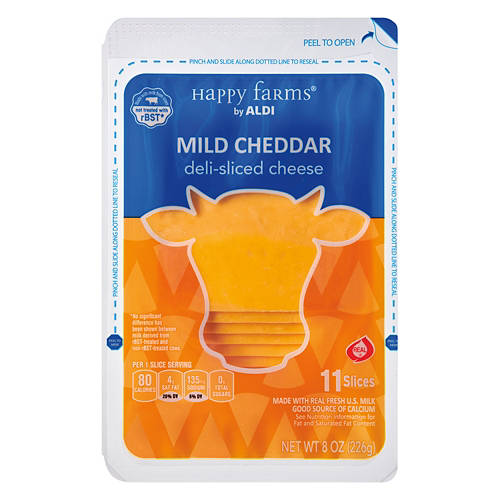 Enjoy Happy Farms Deli Sliced Mild Cheddar Cheese (8 oz) from ALDI. Creamy and slightly tangy. Shop for affordable summer savings at your local ALDI.