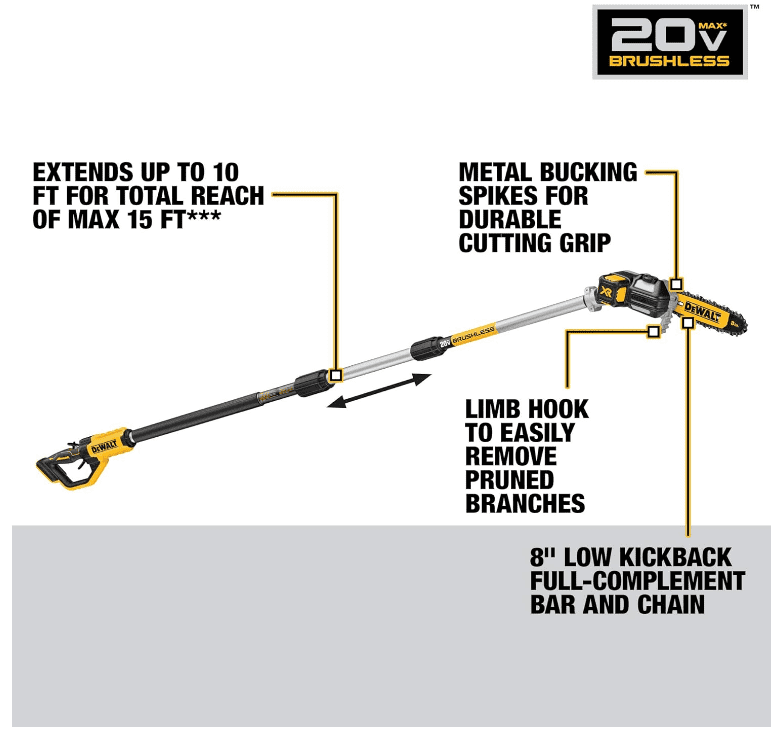 (1) Extension pole(1) DCB112(1) DCB204(1) Multi-tool(1) Sheath(1) Manual(1) Pole saw