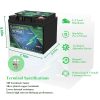 • 【100% Grade A BMS Protection】Our LiFePO4 battery has a built-in 100A BMS to prevent overcharging, over-discharging, overcurrent, overheating and short circuit, and has an excellent self-discharge rate, ensuring the safety level of LiFePO4 batteries and optimizing 12V battery performance.