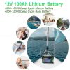 • 【Widely Use Environment】12V 100Ah lithium battery supports series and parallel connection for larger capacity, ideal for ships, trolling motors, boats, RVs, electric vehicles, recreational vehicles, golf carts, solar energy, kayak carts, lighting, backup power, home energy storage, off-grid applications, etc.