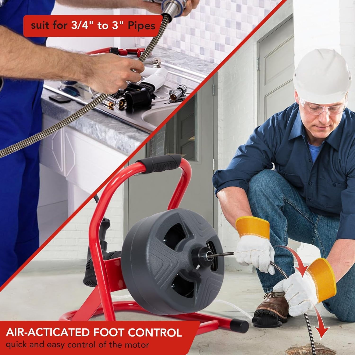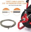 AOILE Drain Cleaning Machine 75Ft x 1/2 in, Electric Drain Auger for 2-4 Inch Pipes with Cutters & Glove