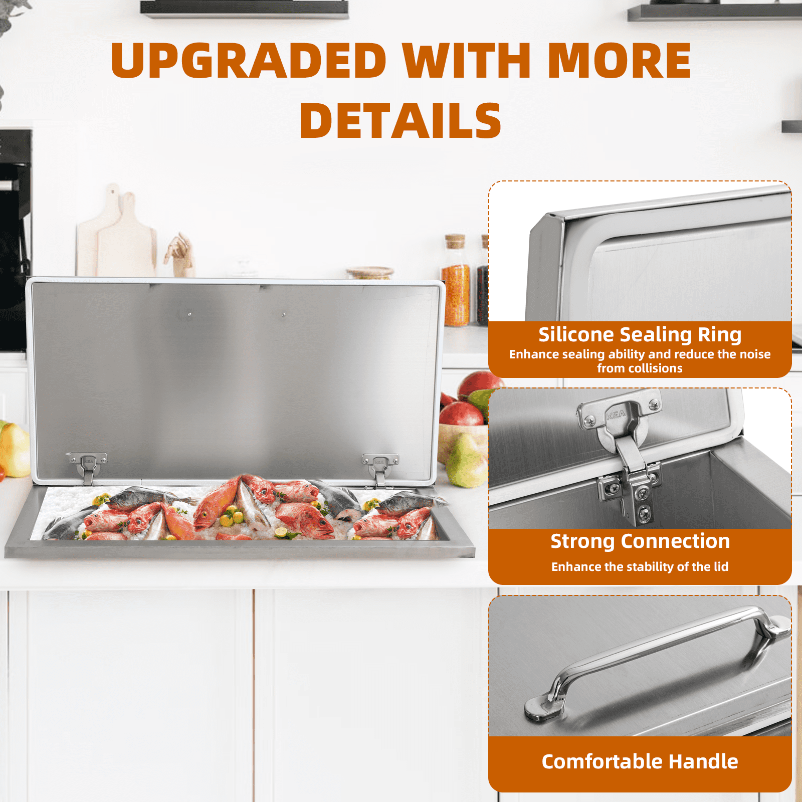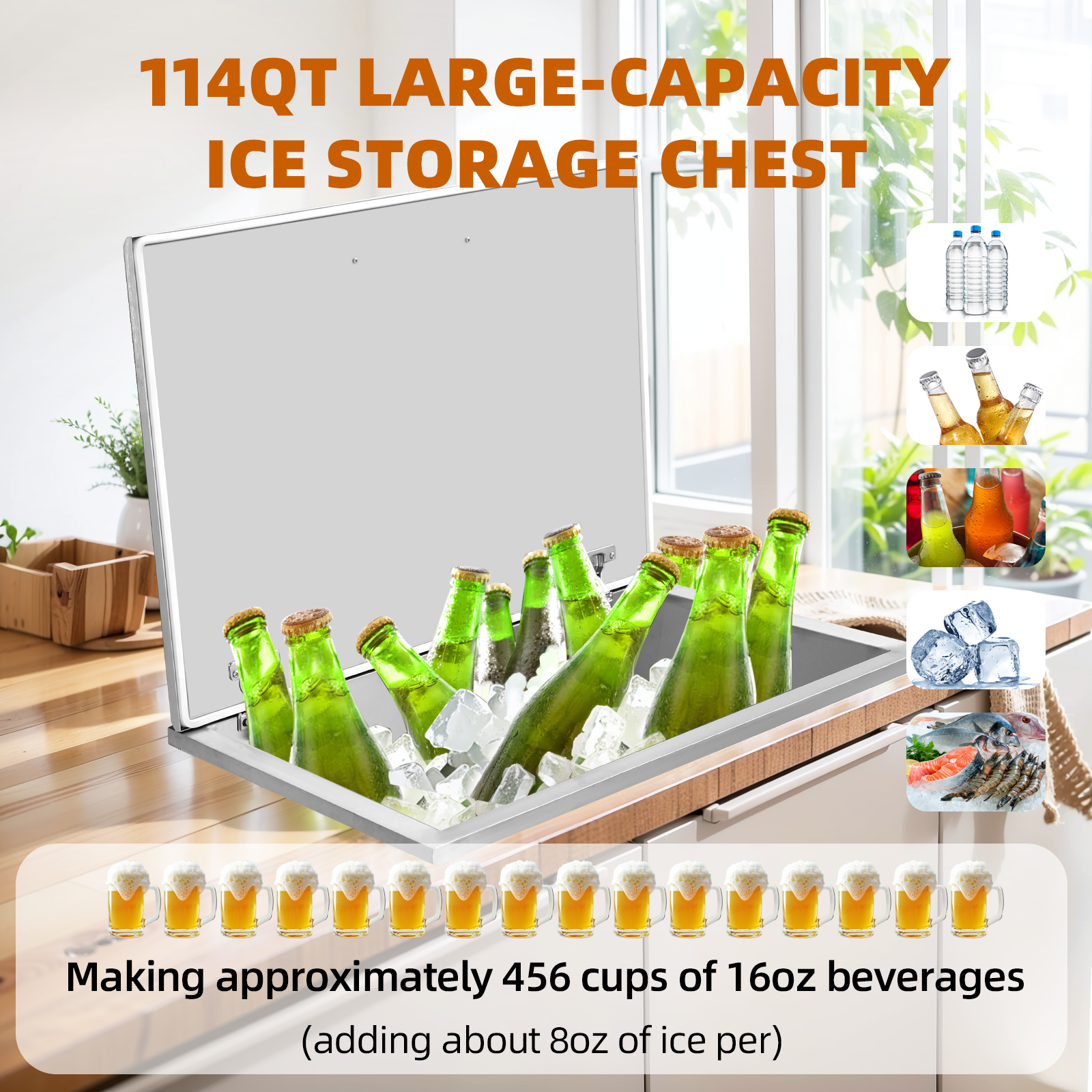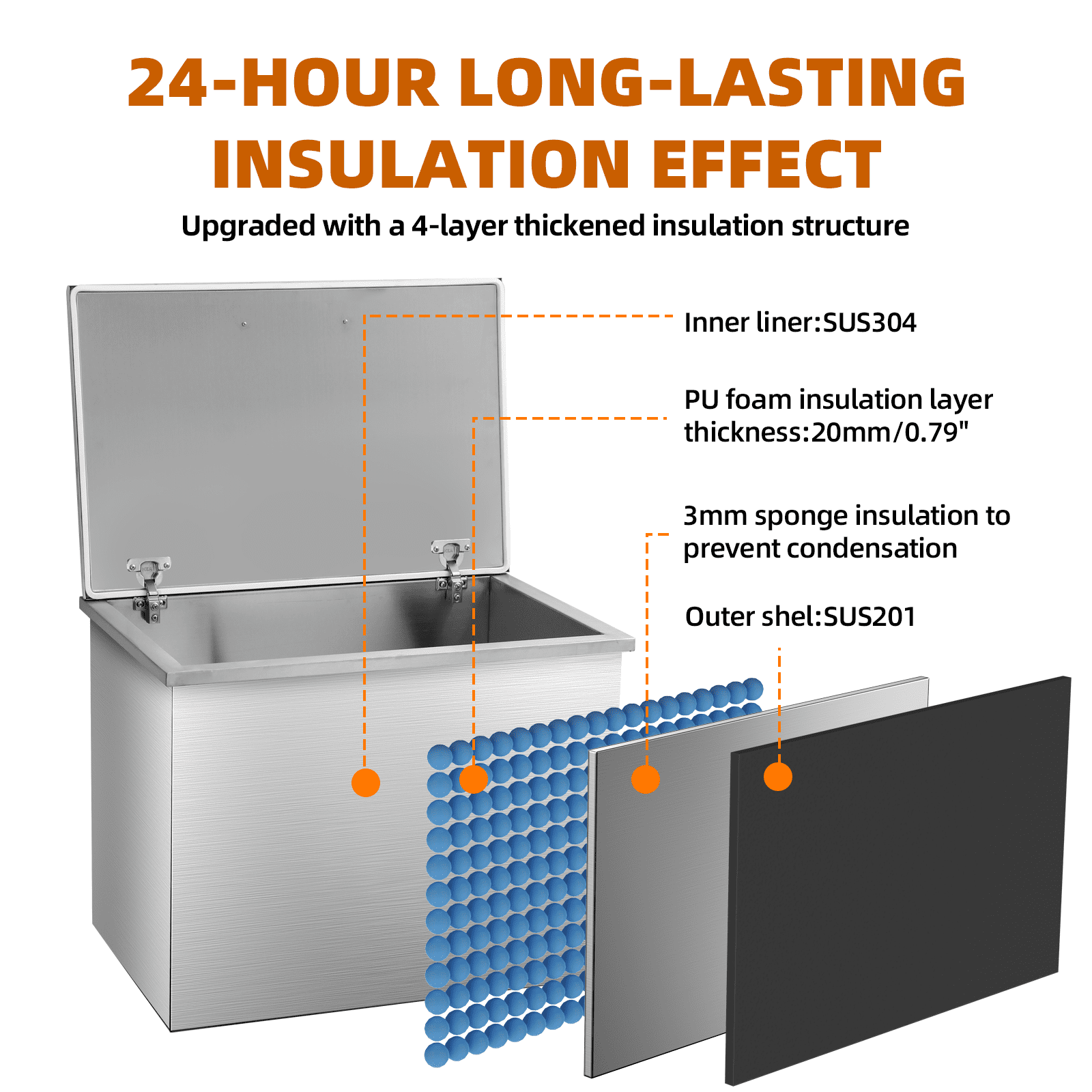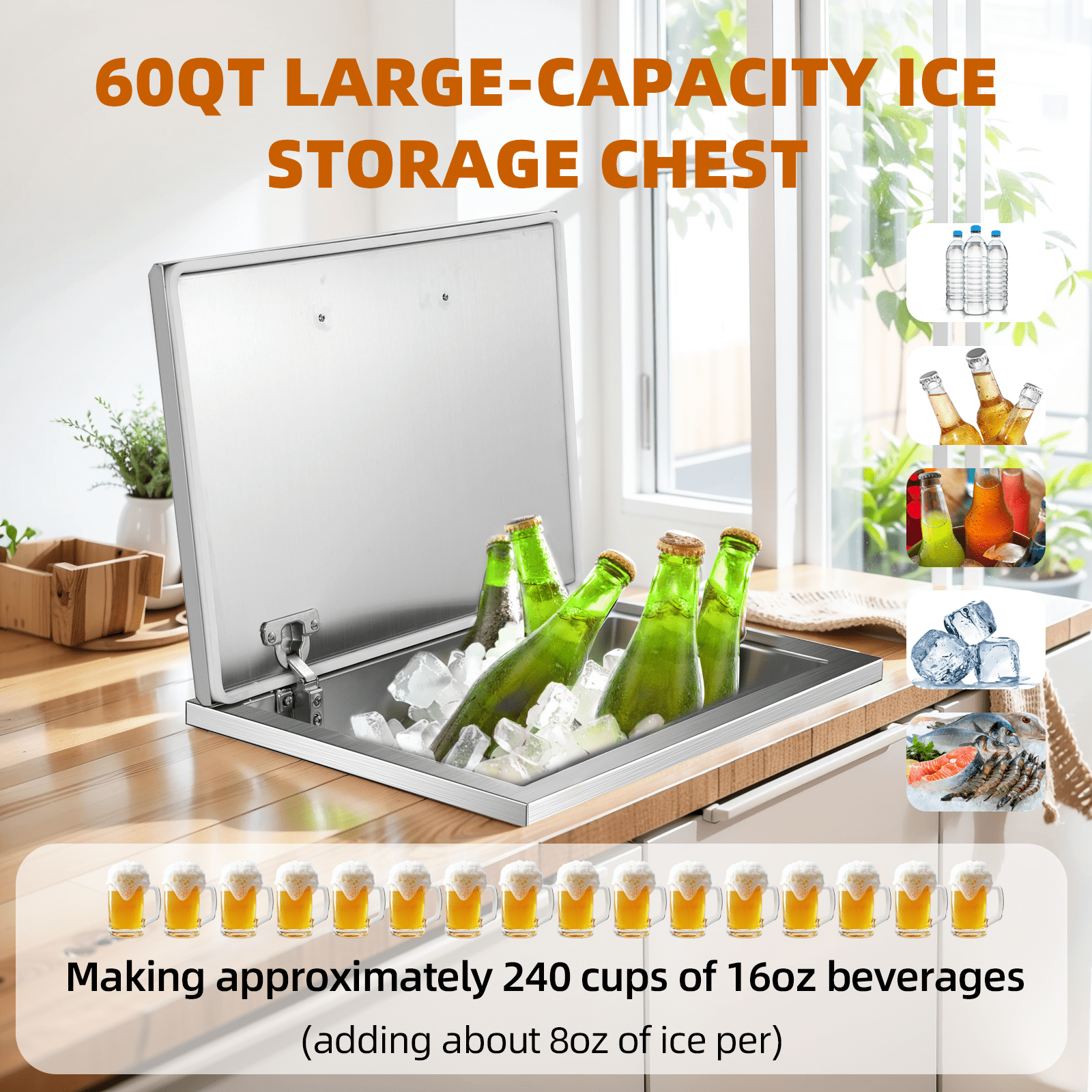 Drop-In Ice Chest – Stainless Steel Commercial Ice Bin for Outdoor Kitchen & Bar, Ideal for Wine & Beer, Non-Electric Insulation, Convenient Drainage