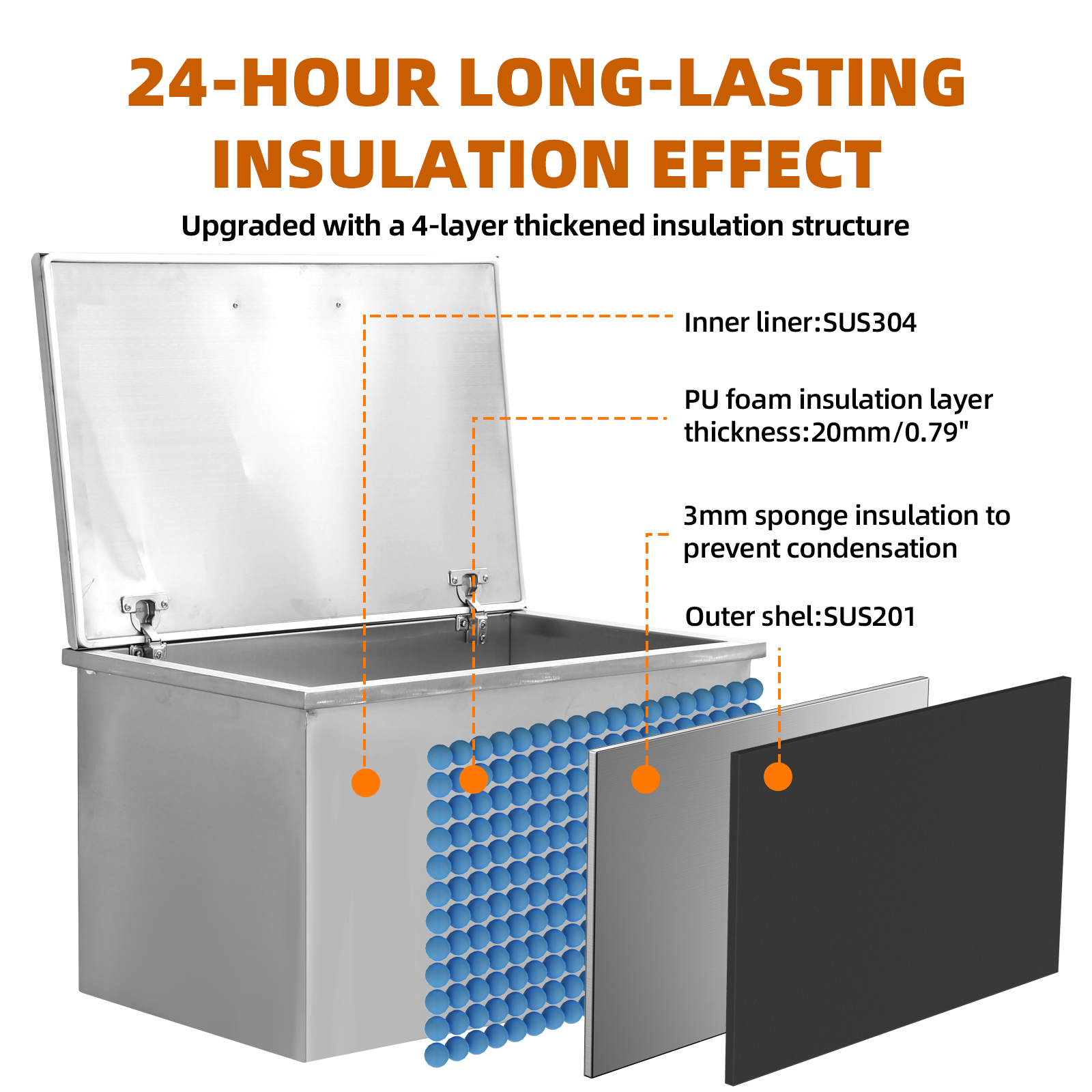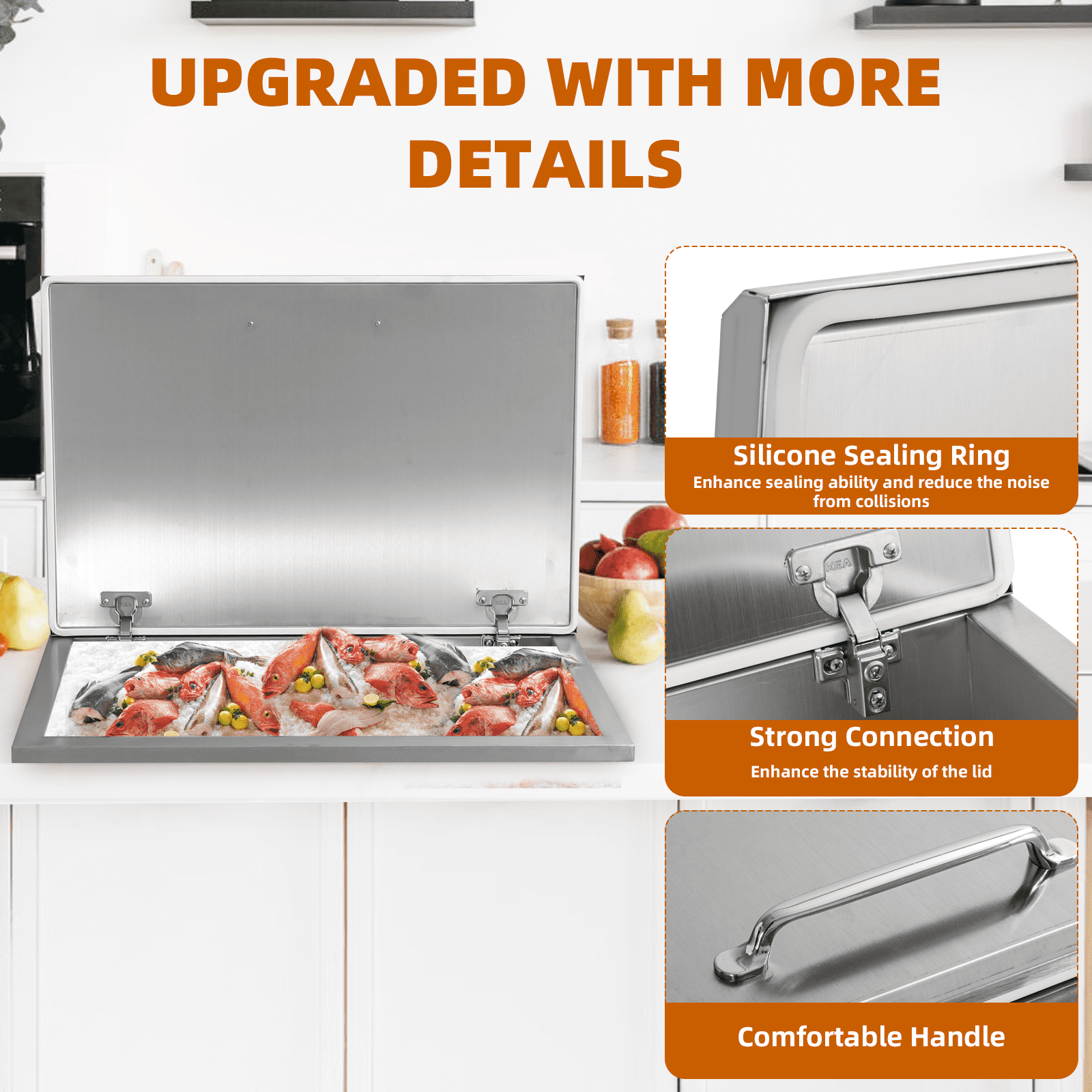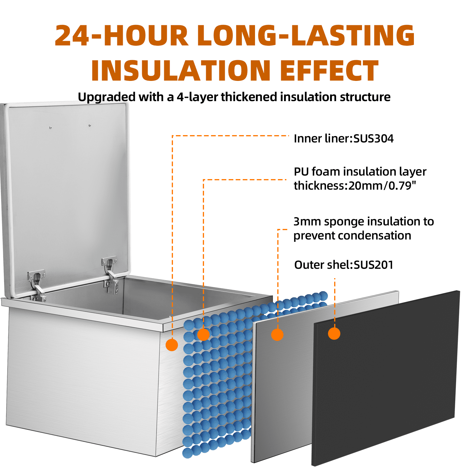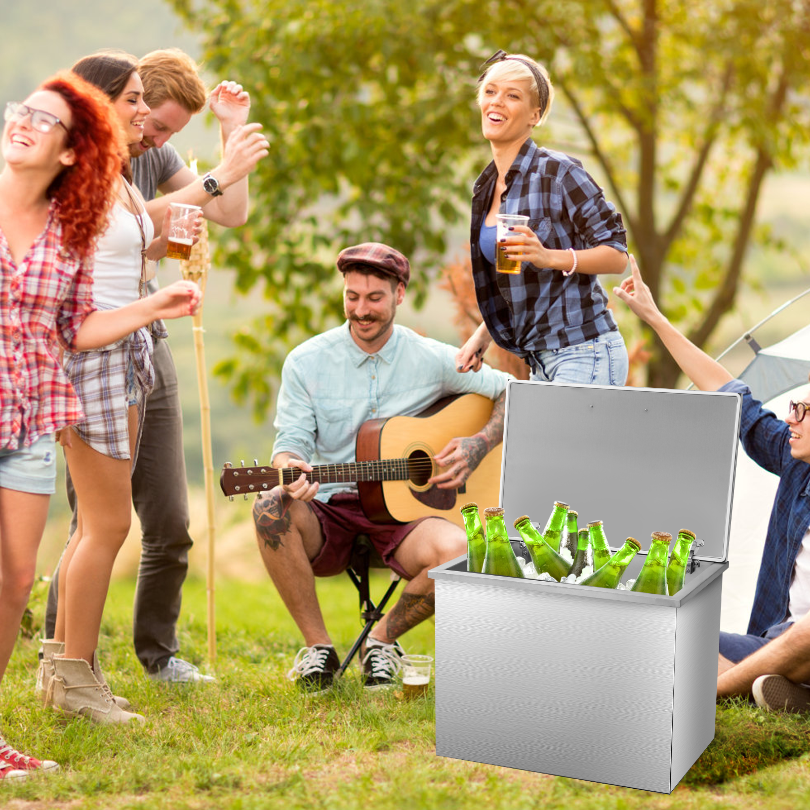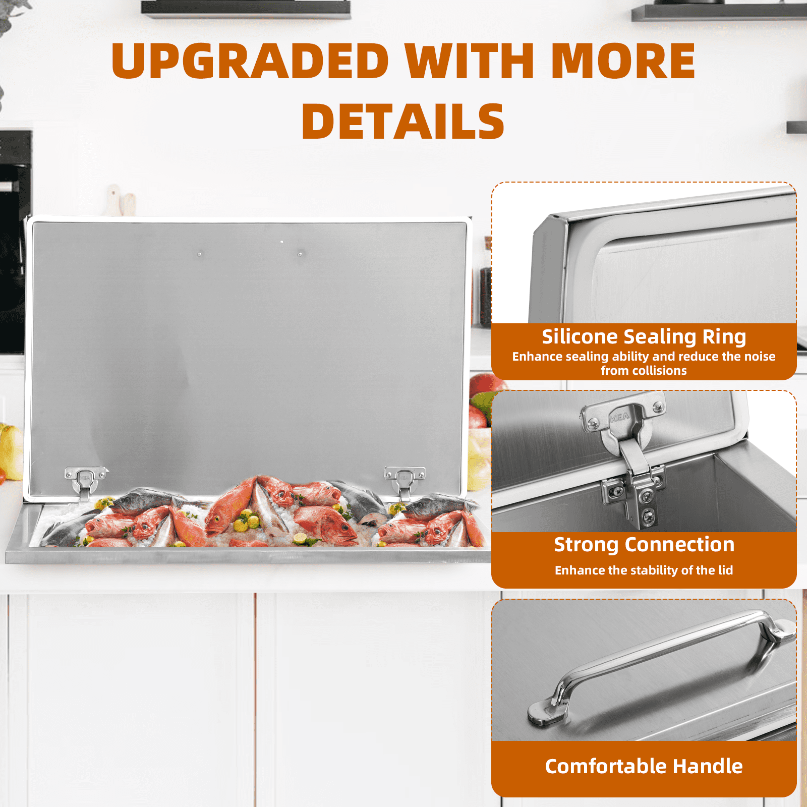 Drop-In Ice Chest – Stainless Steel Commercial Ice Bin for Outdoor Kitchen & Bar, Ideal for Wine & Beer, Non-Electric Insulation, Convenient Drainage
