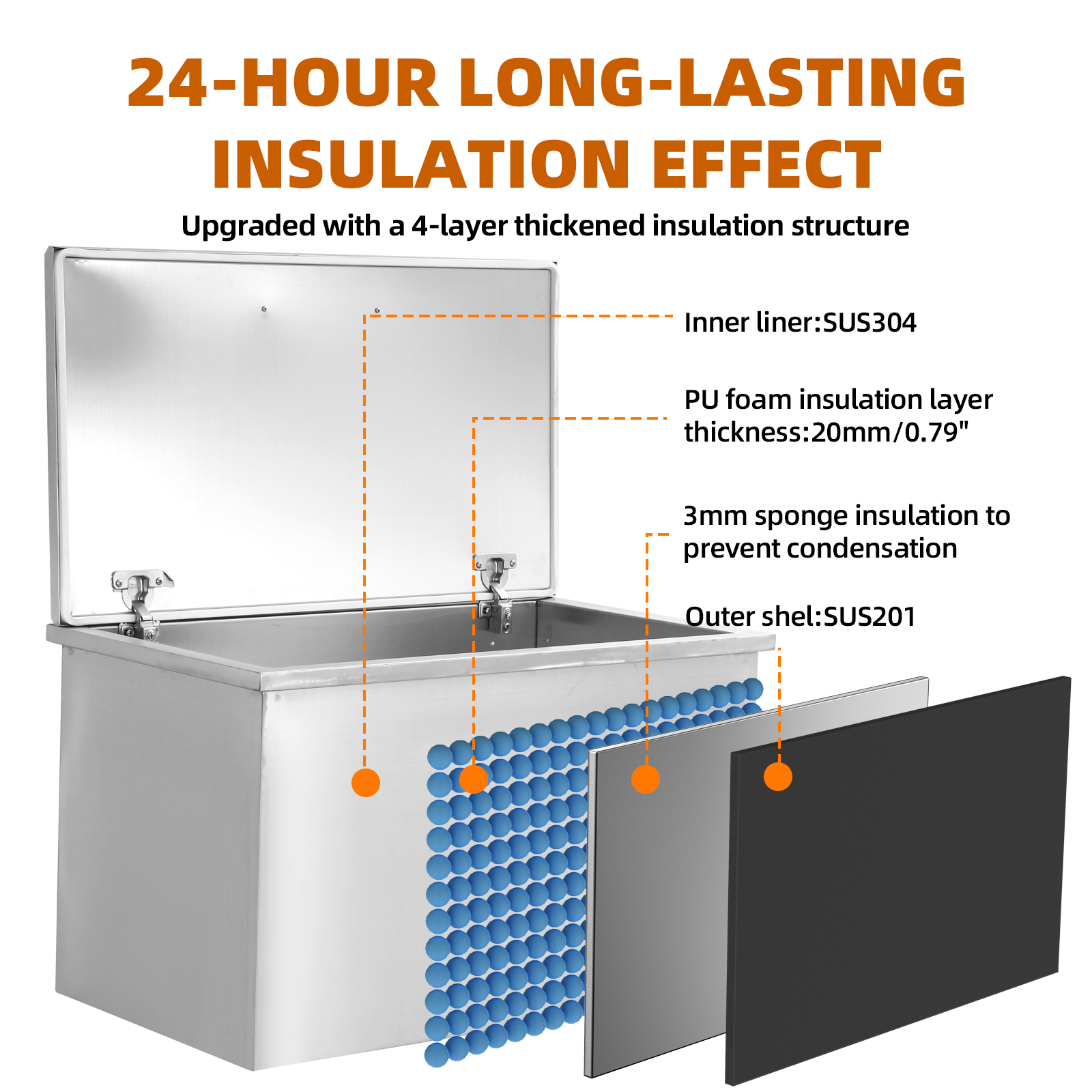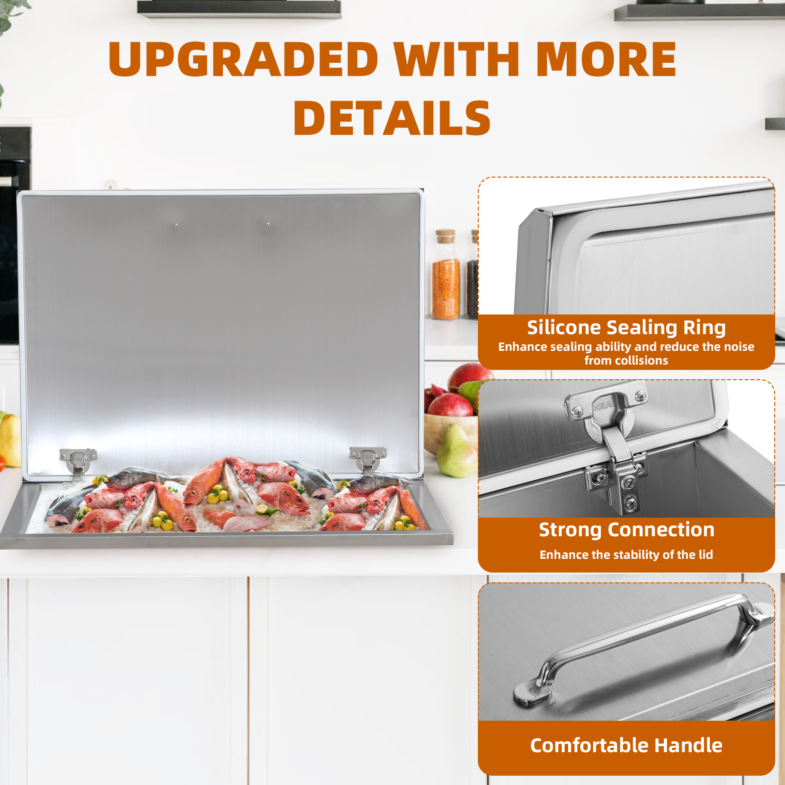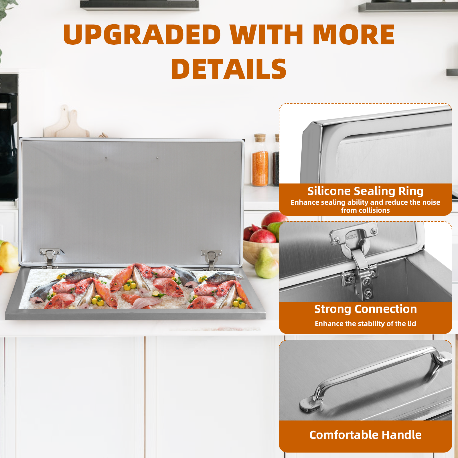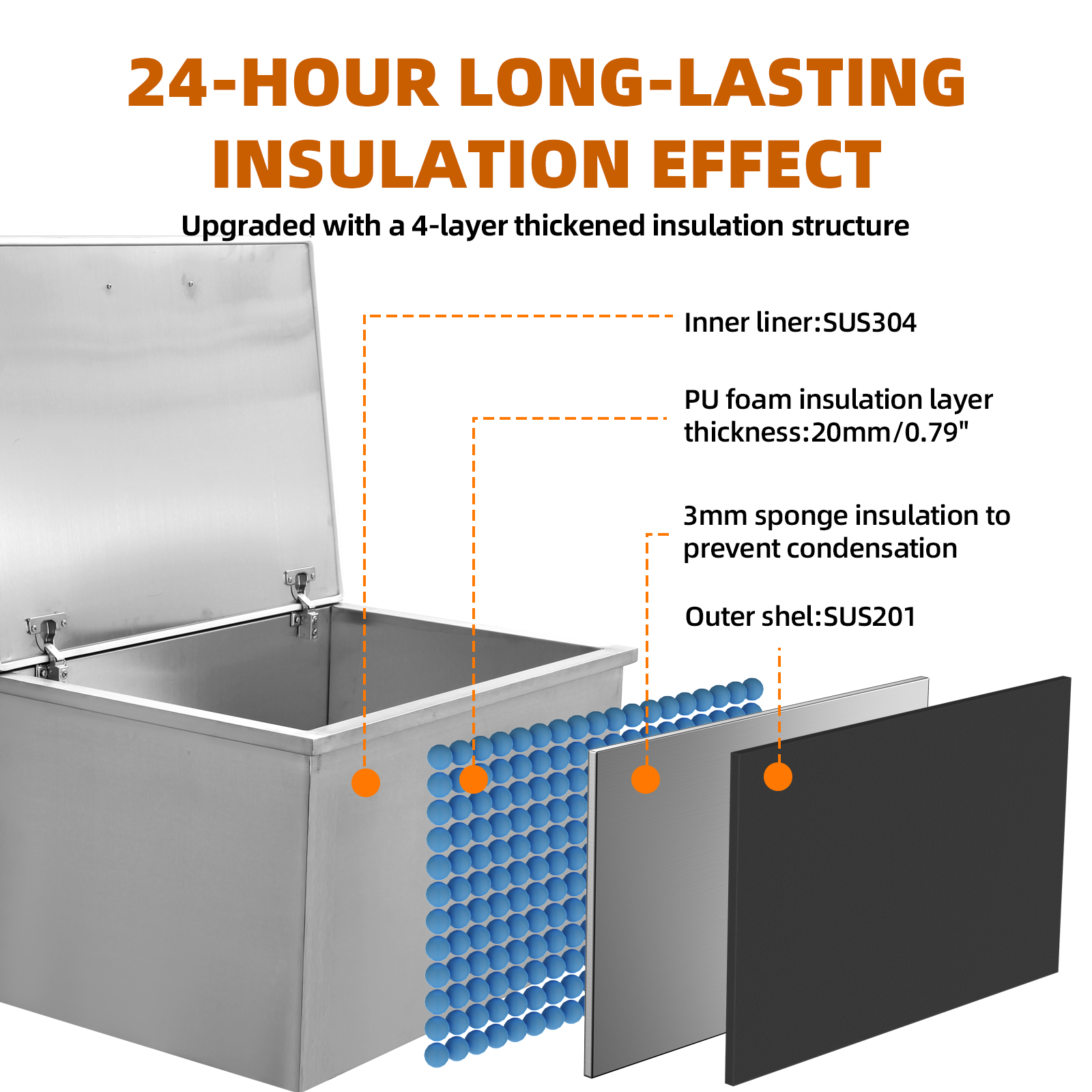 Drop-In Ice Chest – Stainless Steel Commercial Ice Bin for Outdoor Kitchen & Bar, Ideal for Wine & Beer, Non-Electric Insulation, Convenient Drainage