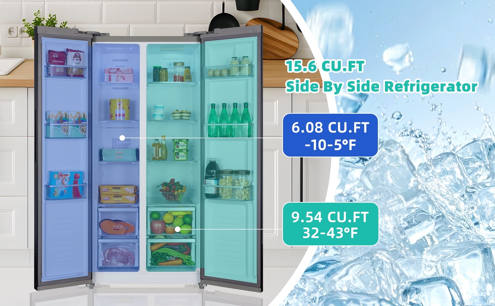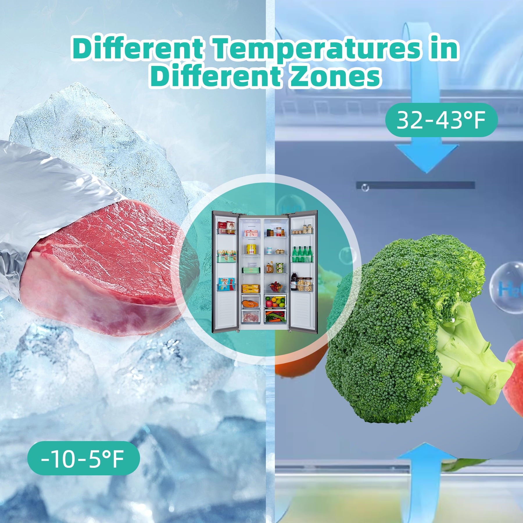 Precisely adjust settings for the left freezer compartment (-10℉ to -24℉) and right fresh food zone (32℉-43℉). Ideal for preserving delicate produce or rapidly freezing meats without cross-interference.