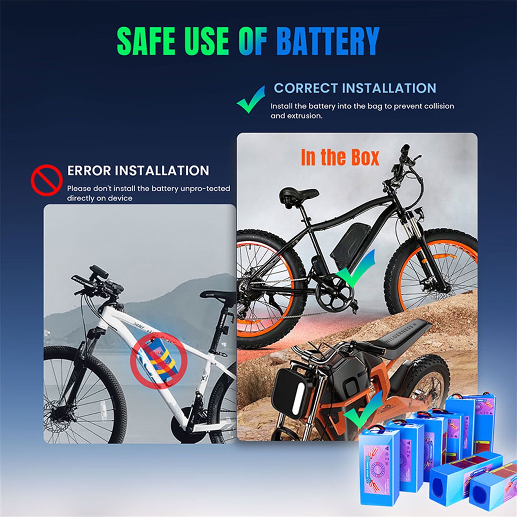 36V,48V,52V ebike battery for 500W, 750W, 1000W, 1200W Electric Bike. Installation, missing accessories, charger can’t charging problems. Please feel free to contact our customer service.