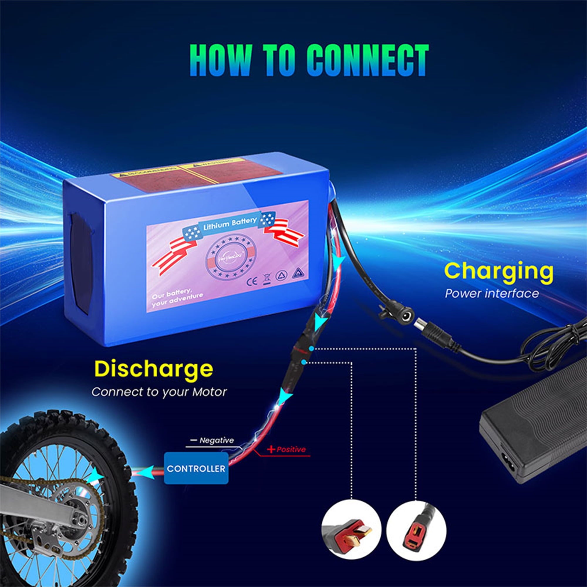- BATTER YPARAMETERS: 48v battery have been approved by UL,CE and is equipped with 18650 cell. We offer different plugs like T or XT60 or XT90 converter. The battery design is lightweight and let you easy to pull in and remove out. If 48V battery does not work, don’t know how to install, often powered off, etc problem. Please advise us freely, we will provide professional suggestion to you.