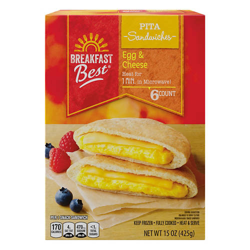 Fuel your morning with these Breakfast Best Egg & Cheese Pita Breakfast Sandwiches! Each hearty breakfast sandwich features layers of melty cheese and fluffy eggs inside a soft pita pocket. Team yours with a hot cup of coffee and today’s paper for the perfect start to your day!