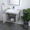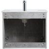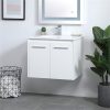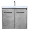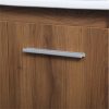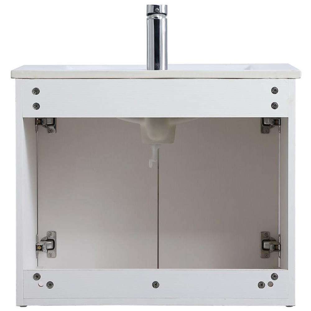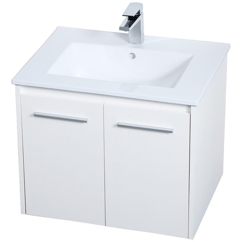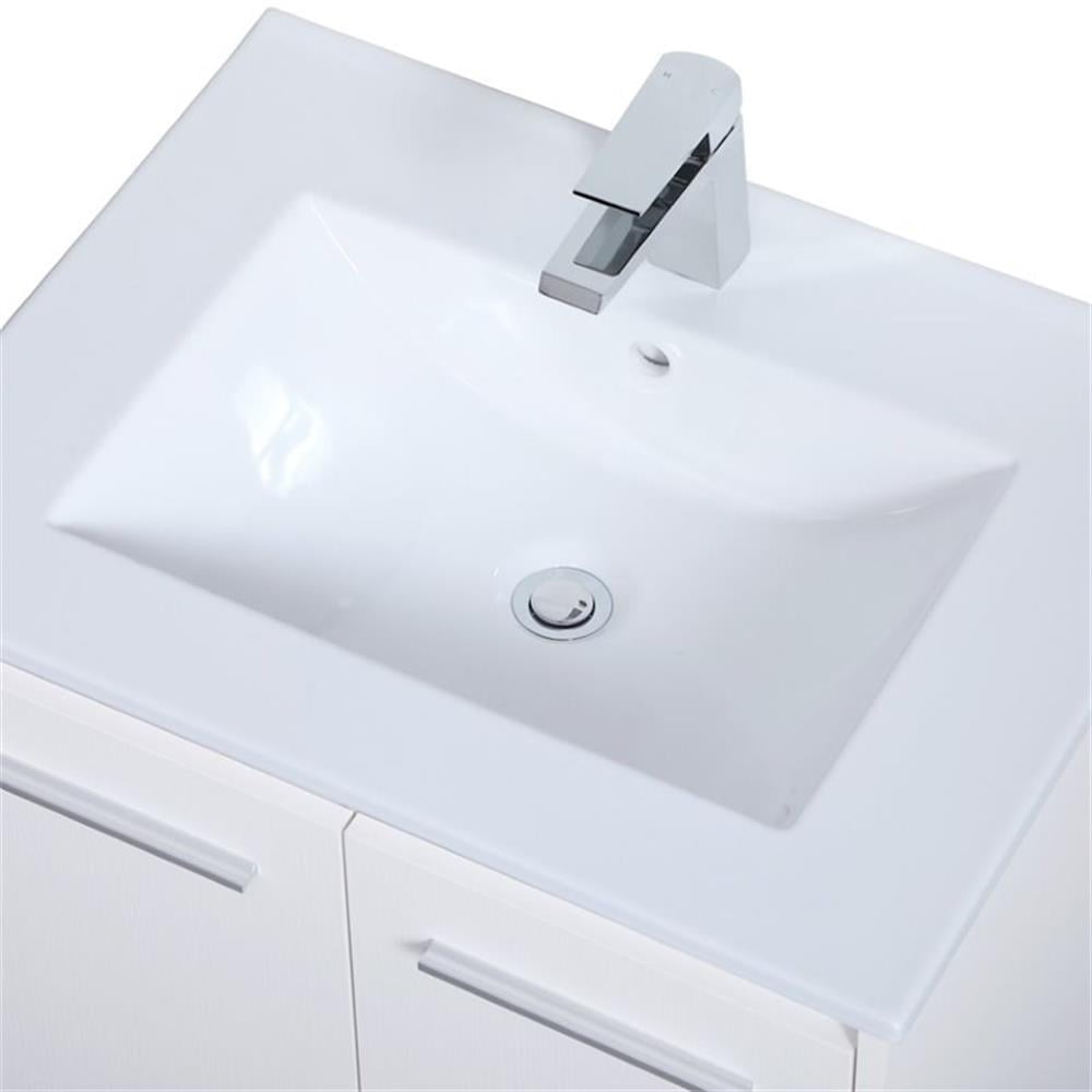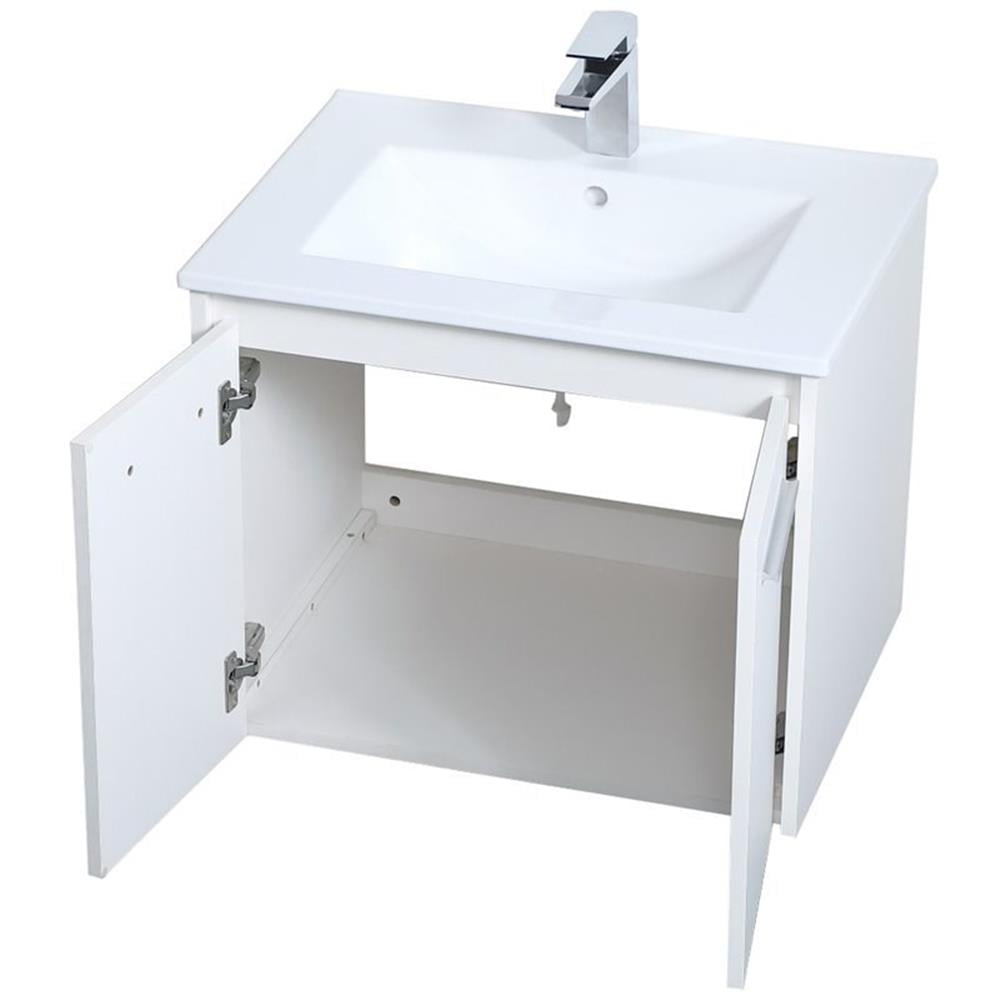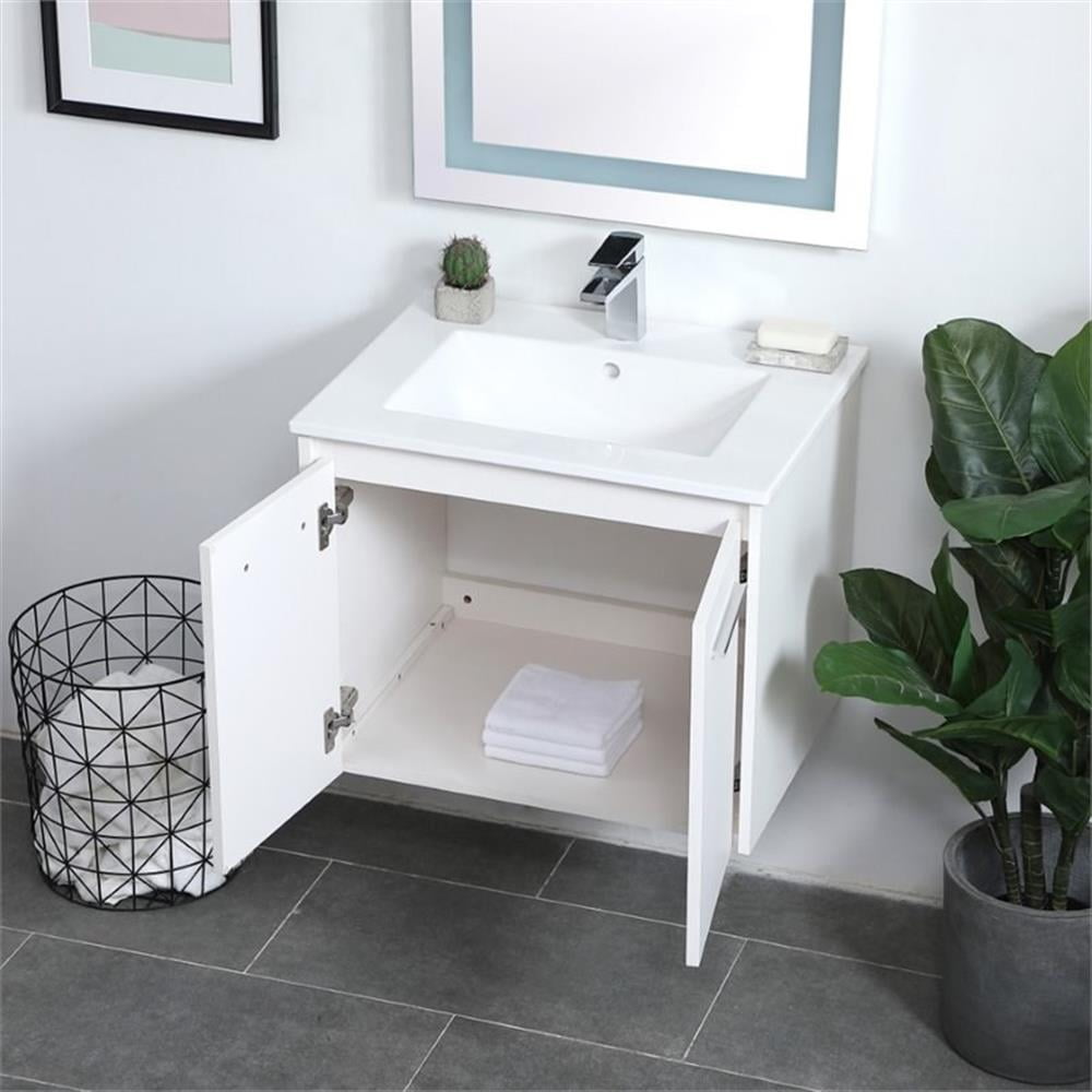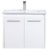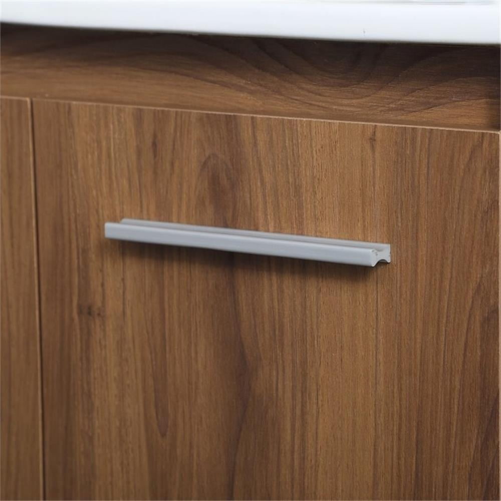 The contemporary simplicity of this 24″ floating vanity in a walnut brown finish will help open the space and add stunning modern flair to your bathroom or powder room. The open space below makes it easy to show off your tiles and to clean the floor with ease–it’s also the perfect place for a hamper. Double doors open to reveal plentiful of storage pace to store all of your bathroom miscellany. The clean lines that permeate through the design will surely create a fresh look in your home.