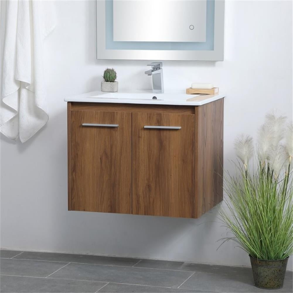 Home Bathroom Vanities 24 inch Single Bathroom Floating Vanity in Walnut Brown
