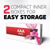 - Packs are compact and easy to store; larger packs come with convenient inner storage boxes