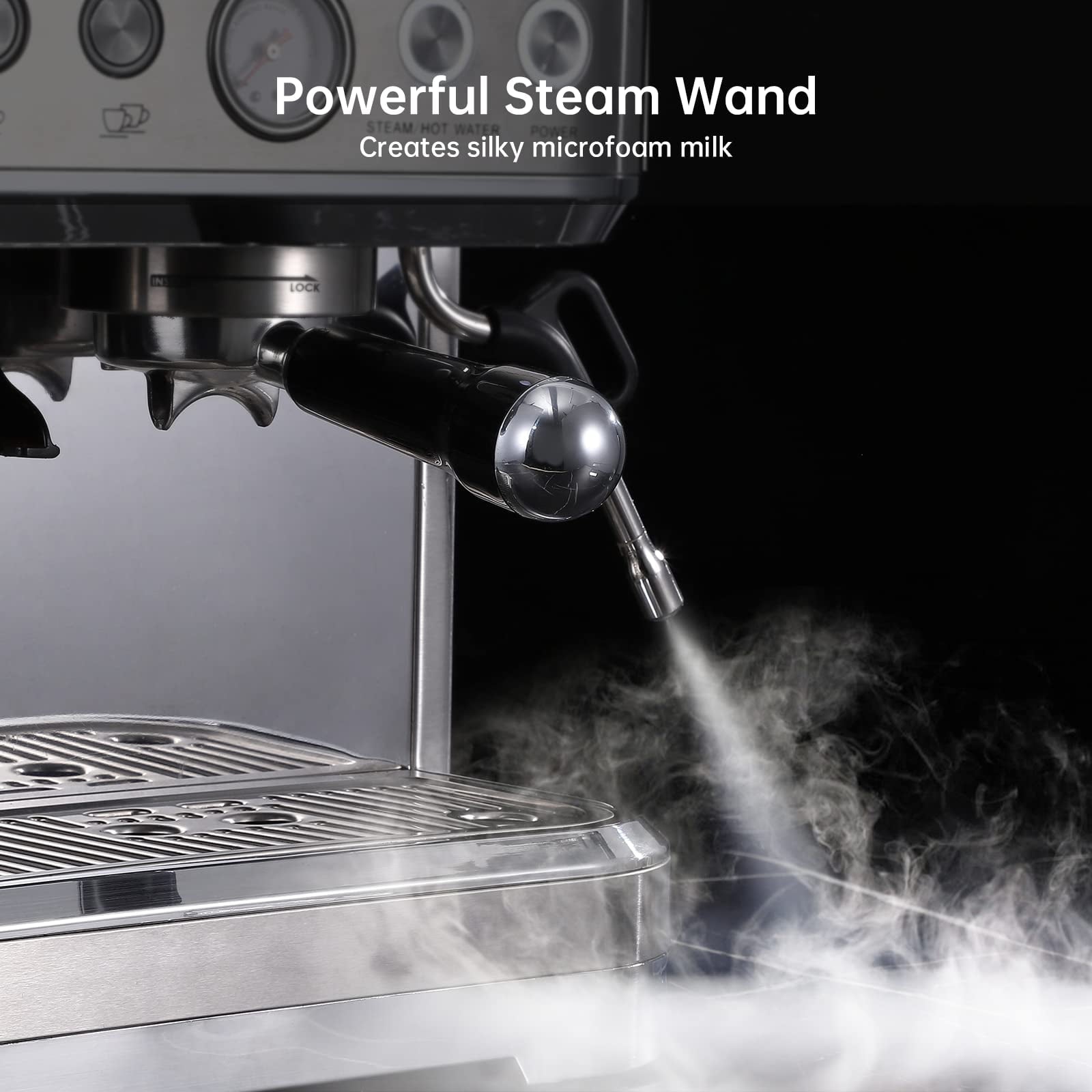 Espresso Machine with Grinder and Milk Frother – 15 Bar Pump for Cappuccino and Latte, 85oz Removable Water Tank, Stainless Steel, Steam Wand, Auto-Purge Function
