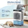 • Easy to operate:This evaporative air cooler features an intuitive touch control panel with LED backlight for nighttime visibility, along with a convenient wireless remote that works within 10 meters. The remote lets you effortlessly adjust fan speed, cooling modes, and timer settings from your couch or bed, while the illuminated touch display ensures easy operation day or night.
