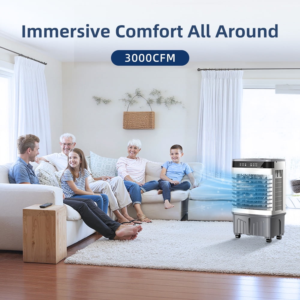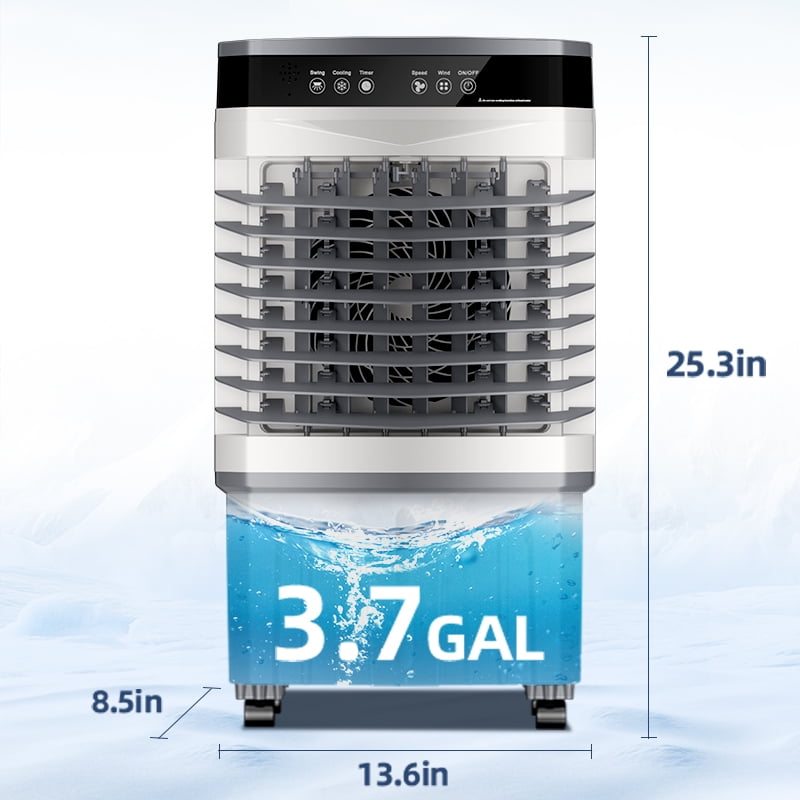 Home Evaporative Air Coolers 25‘’Evaporative Air Cooler with 12H Timer,3.7gal Water Tank, 3000CFM Portable Cooling Fan 3 Speeds,Smart Remote,Swamp Cooler for Room Bedroom Office