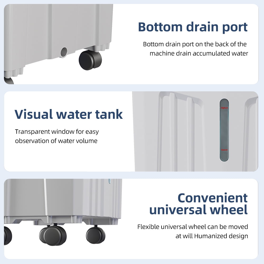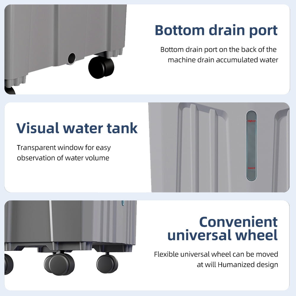 Top water tank: This evaporative cooler can work continuously for 12 hours without frequent water filling. Due to the top water filling design, there is no need to bend over to fill water, which is friendly to the elderly and pregnant women. The water indicator window reminds you to add water in time, with two water level lines, the highest and the lowest.