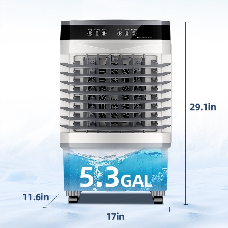 360 °Universal Wheels: The evaporative air cooler can reach 120°wide angle oscillation, and the shutters can be adjusted up and down manually. With 4 universal wheels, can be easily moved to wherever it is needed. Indoor as room, bedroom, kitchen. Outdoor as a garage, patio, backyard, etc