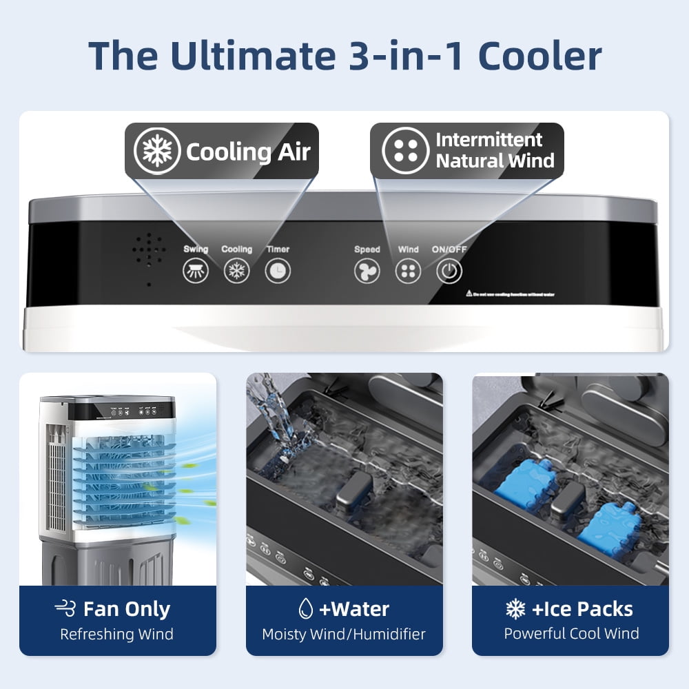 • Superior Performance:Experience enhanced cooling performance with our innovative 3D ice curtain system. The multi-layer honeycomb design creates maximum water contact area, working together with 4 ice packs to deliver 2X faster and more effective cooling. This advanced evaporation technology lowers air temperature significantly while maintaining optimal humidity levels for your comfort.