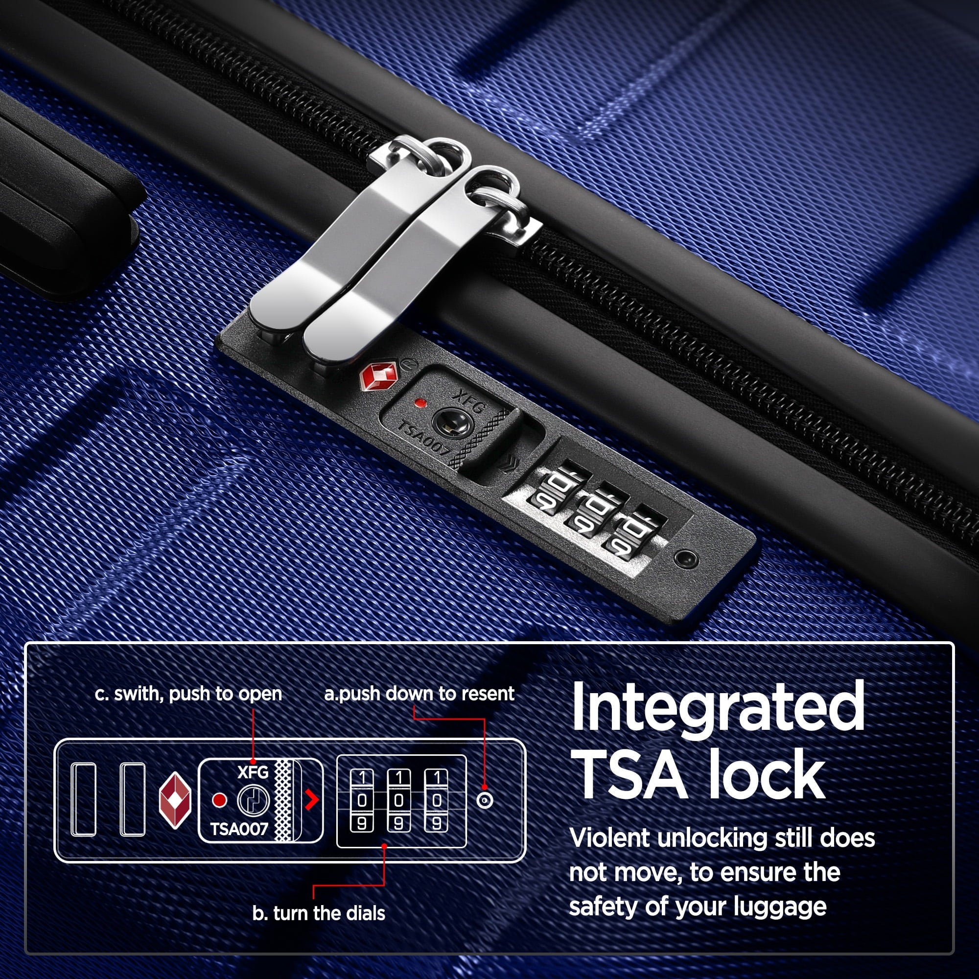 【Luggage with TSA Lock】TSA customs lock only allows TSA agents to inspect your bag without damaging the lock.