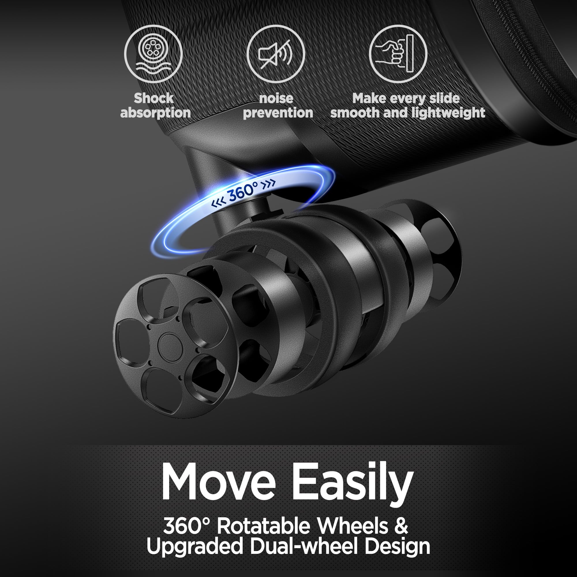 【Luggage with Universal Wheels】Multi-directional smooth and silent 360° wheels can help you save energy and make your luggage lighter, and the rubber wrapped outside can effectively reduce the noise when pushing and pulling.