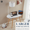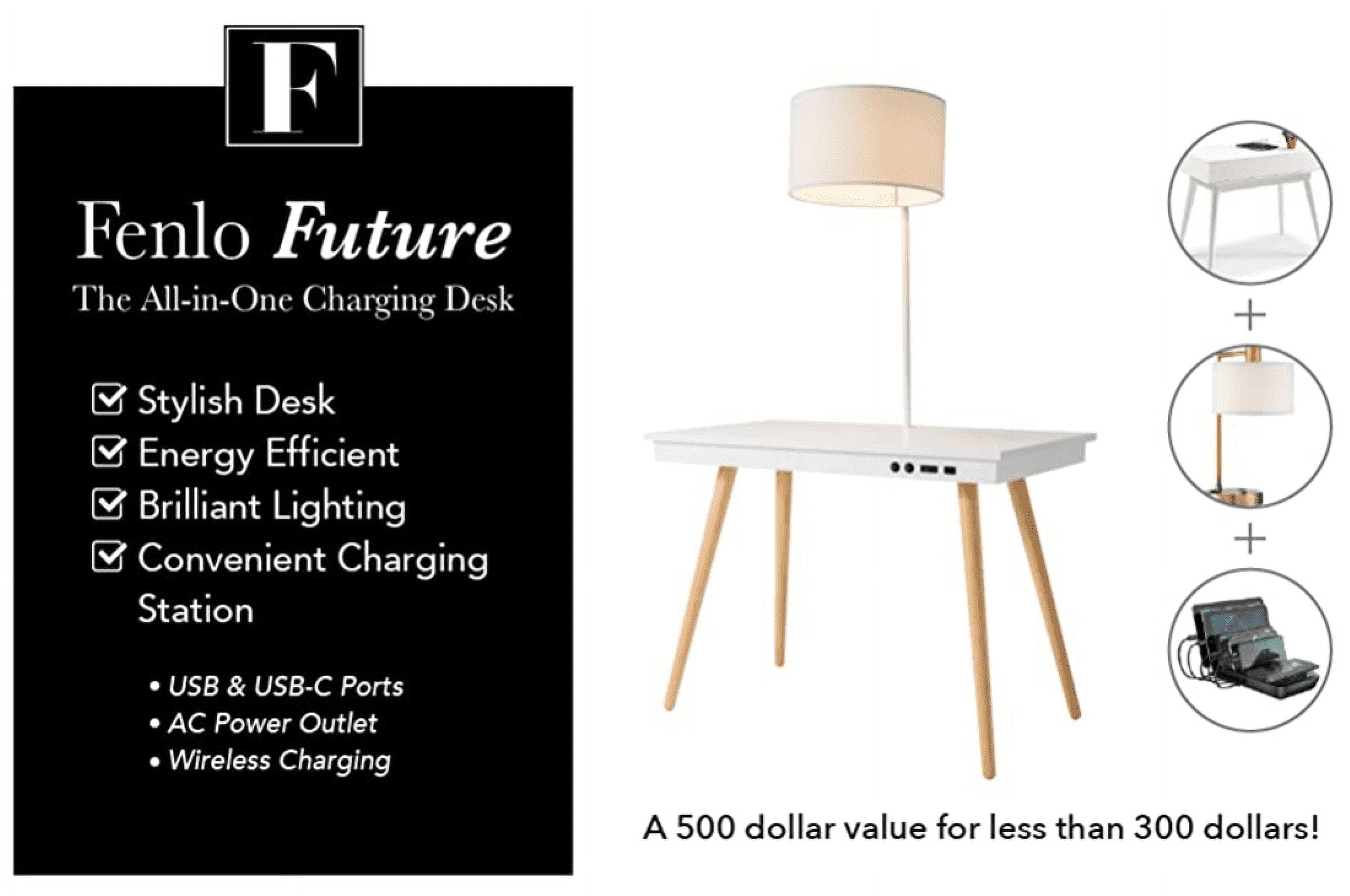 “Create a comfortable space for working and studying with the FENLO Future Oval Mid-Century Modern Desk for Home Office, Computer Table with USB-C Charging Station, 45.5″”, White. This multipurpose desk features built-in USB type A and C ports, an AC power outlet, and an energy-efficient table lamp. The large, flat oval surface provides ample room for a laptop and other work materials. Angled legs support the modern compact desk while maintaining a small footprint. Easy to assemble, this modern desk for home office is perfect for any workspace.”