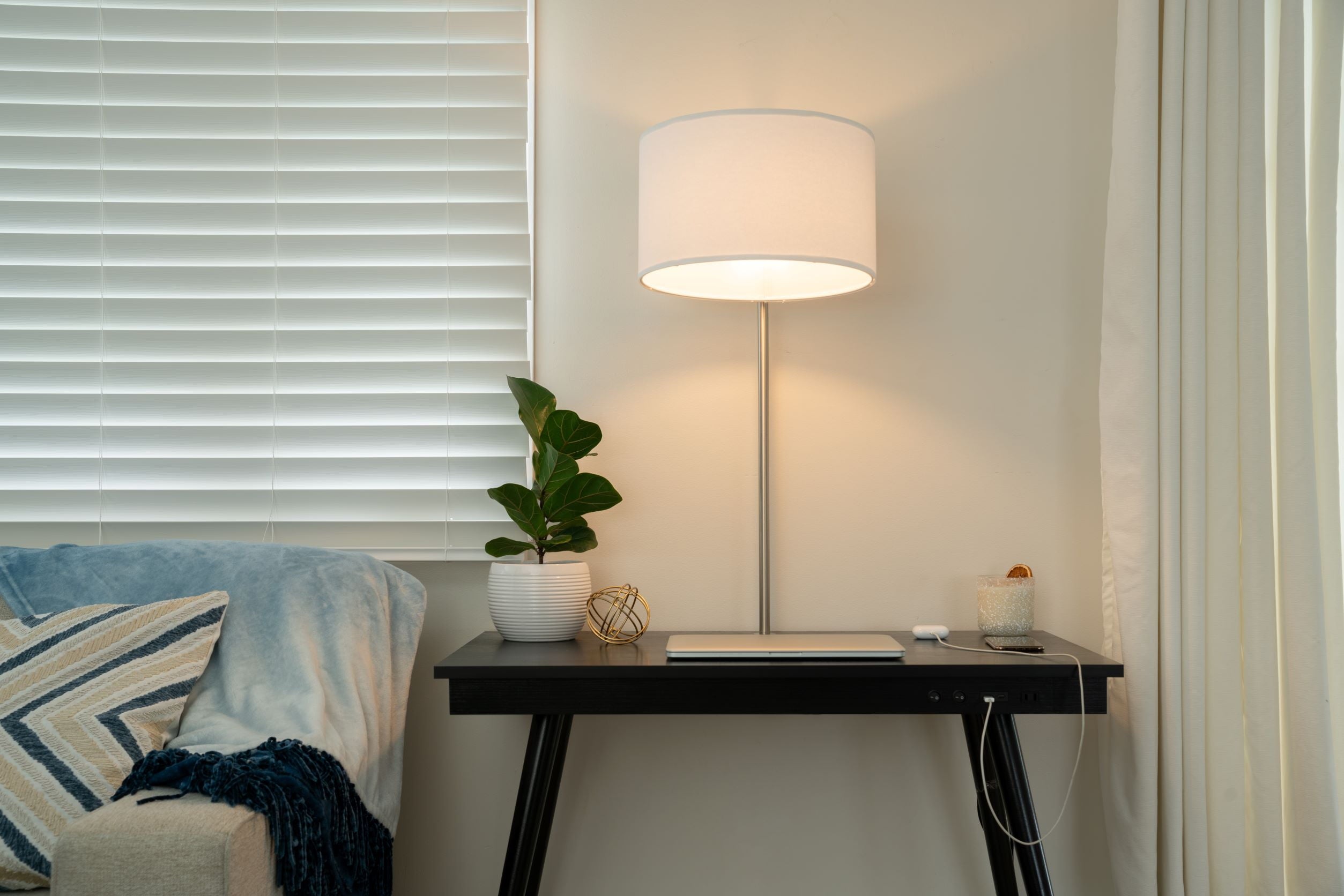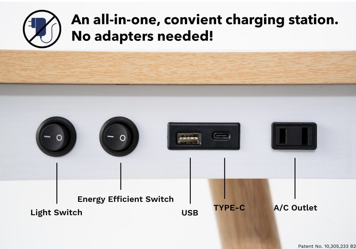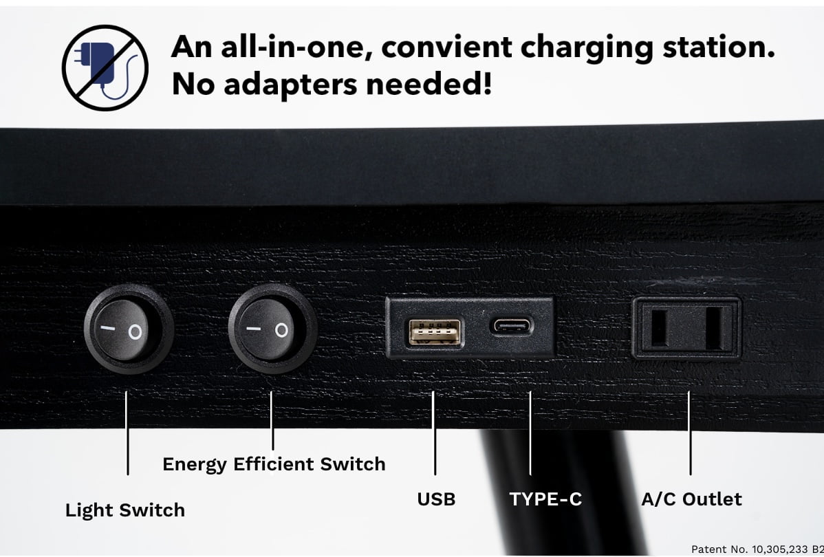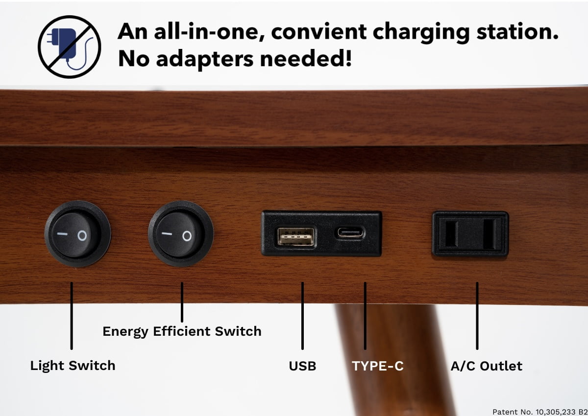 - [Compacted All In One] – This mid-century modern desk has a detachable 360° adjustable overhead lamp and the convenient tech accessibility you’d want (a power outlet, as well as USB and USB-C charging ports) packed into a single piece of furniture