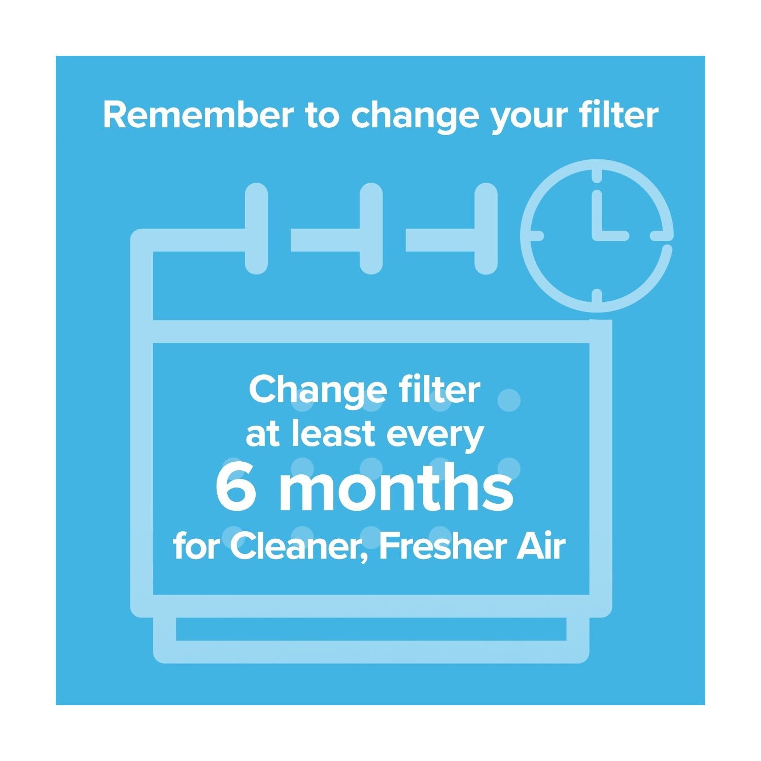 - REPLACE YOUR FILTER every 6 months (based on 12 hours of operation per day)