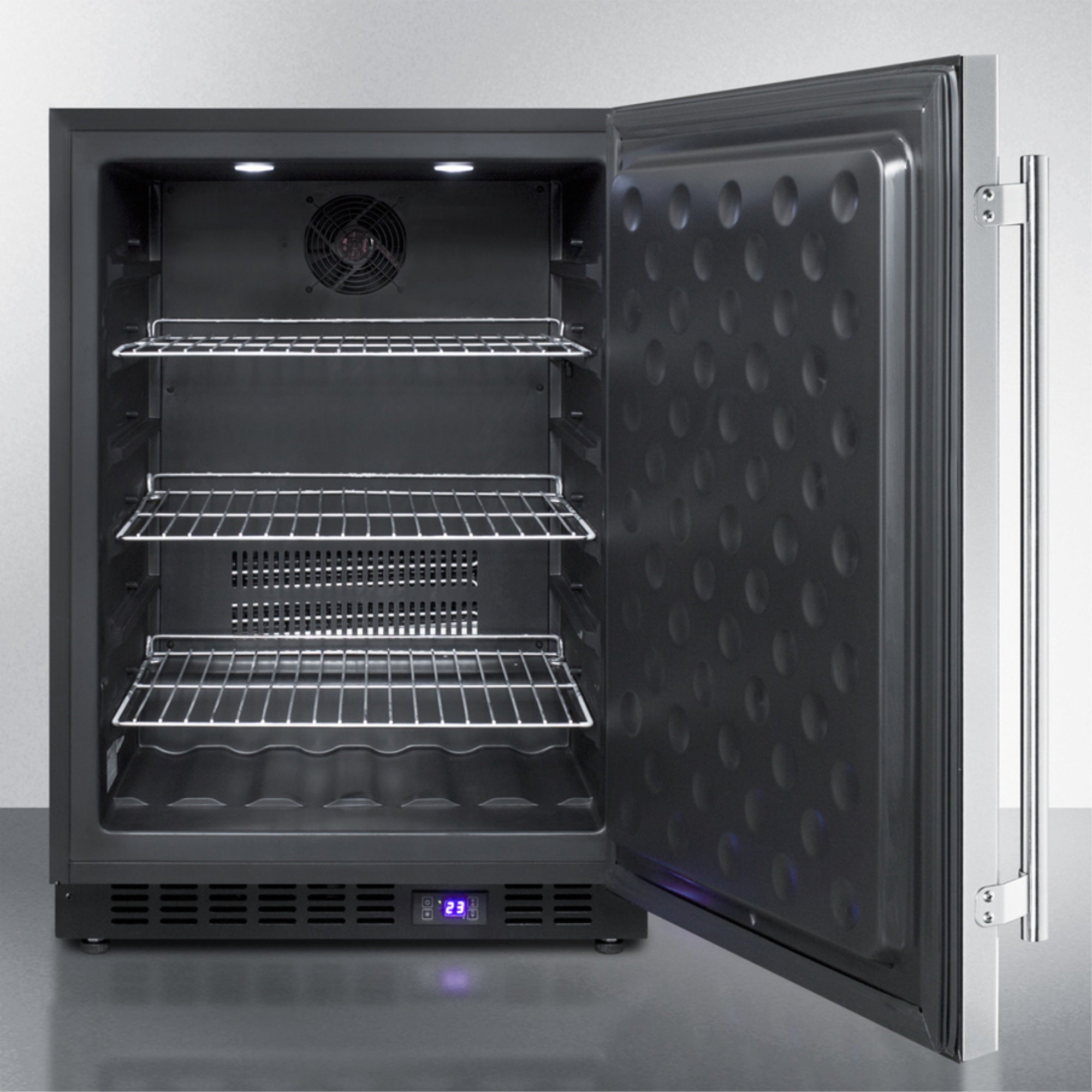 The SPFF51OSCSS is a 24″ wide all-freezer designed for built-in or freestanding use. The cabinet and door are constructed from stainless steel for a professional look designed to hold up to the outdoor elements. The reversible door includes a factory installed lock for added security and a sleek handle to complete the look.