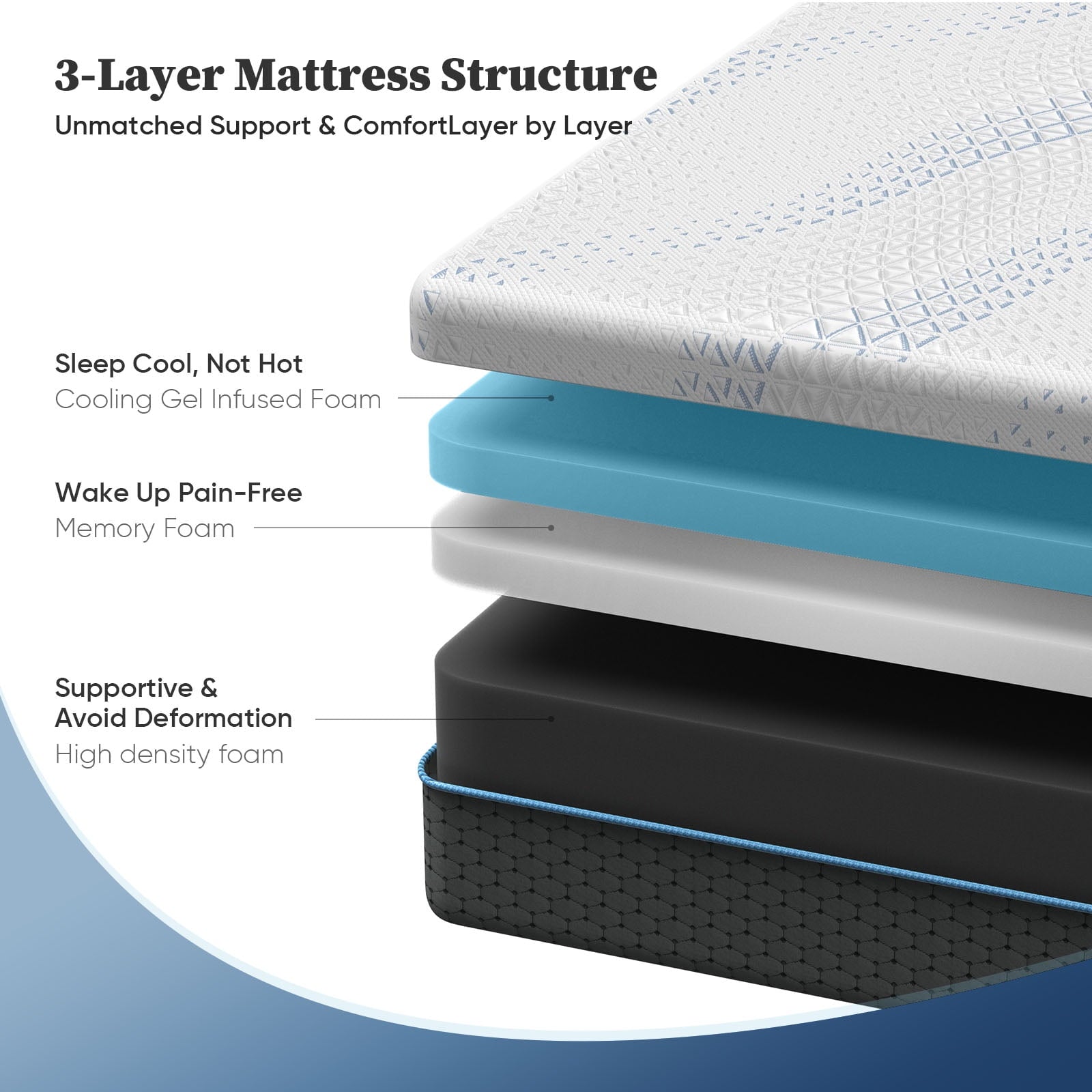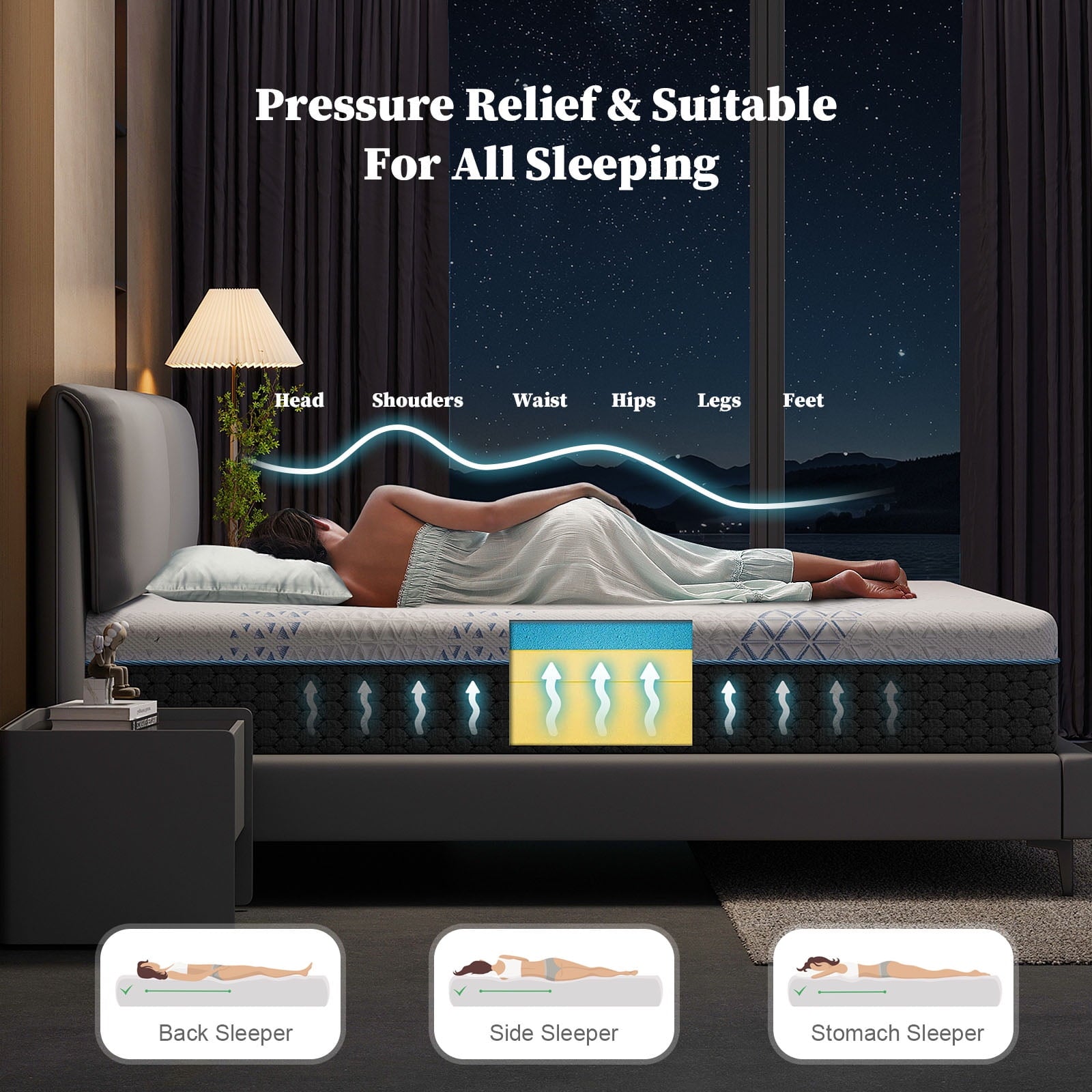 • Multi-Layered and Supportive: Crafted with cooling gel-infused memory foam, pressure-relieving wave-cut foam and stable foam base, this full mattress guarantees a restful night with perfect temperature control and reliable support. Experience the ultimate comfort and support with our full mattress 12 inch today!