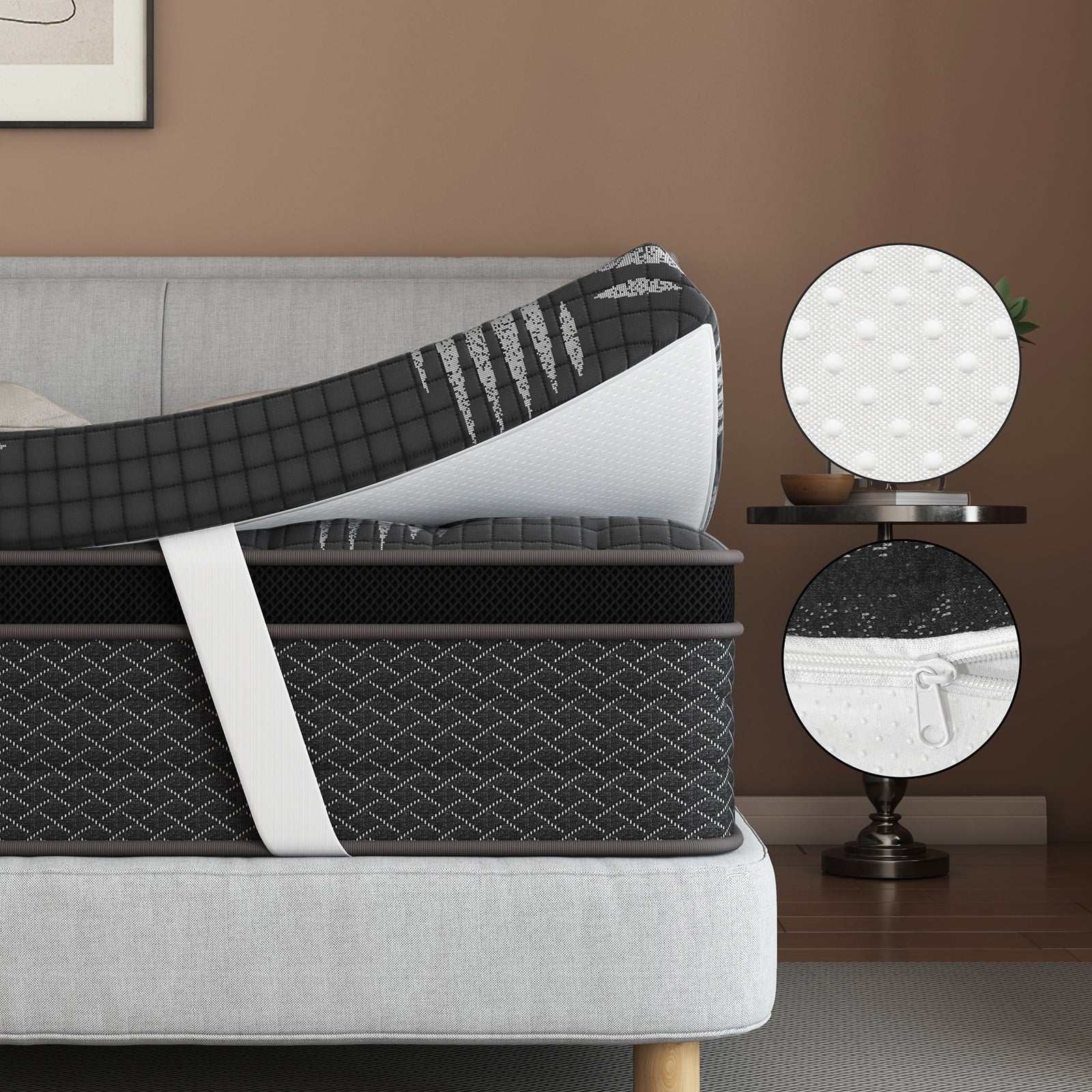 • Superior Comfort: Nisien mattresses are made with fabrics that exceed the texture of Tencel and synthetic fibers, using a high-density woven knit fabric and a unique cut-out geometric pattern that presents a geometric silhouette to release pressure.Motion Isolation: The mattress is specifically designed with independent pocket springs to ensure excellent motion isolation and provide a peaceful sleep without interference from partners or pets.CertiPUR US Certified: The springs used in the Nisien hybrid mattress as well as the foam and fabric are tested and the mattress foam is CertiPUR certified to ensure safety, comfort, and durability.Edge Support: The mattress has reinforced springs around the edges to provide better support, reduce pressure, and provide proper spinal alignment. And the medium-plush mattress with independent pocketed springs provides the perfect balance of support and comfort.Breathable: This mattress is designed with breathable foam inside to help regulate body temperature and absorb moisture, and is equipped with breathable mesh on both sides to further enhance air circulation and enjoy a clean and refreshing sleep.Professional Packaging: Our mattresses are professionally machine compressed and boxed for easy handling and shipping to your bedroom. This hybrid mattress is suitable for all frames, including box spring, slatted base, adjustable bed, and even directly on the floor.Hassle-free Experience: This mattress comes with a 100-night trial sleep guarantee and a 10-year warranty with 24-hour fast response after-sales service. Our warranty covers all manufacturing defects: sags, dents, bumps, etc