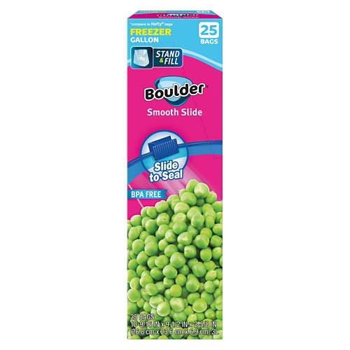 Store fruits and veggies with ease when you use these Boulder Gallon Storage Slider Bags. Each gallon sized plastic bag is BPA free and has a stand & fill design to simplify storage. With a smooth slider on top to keep things fresh, it’s the perfect choice for all your family’s leftovers.