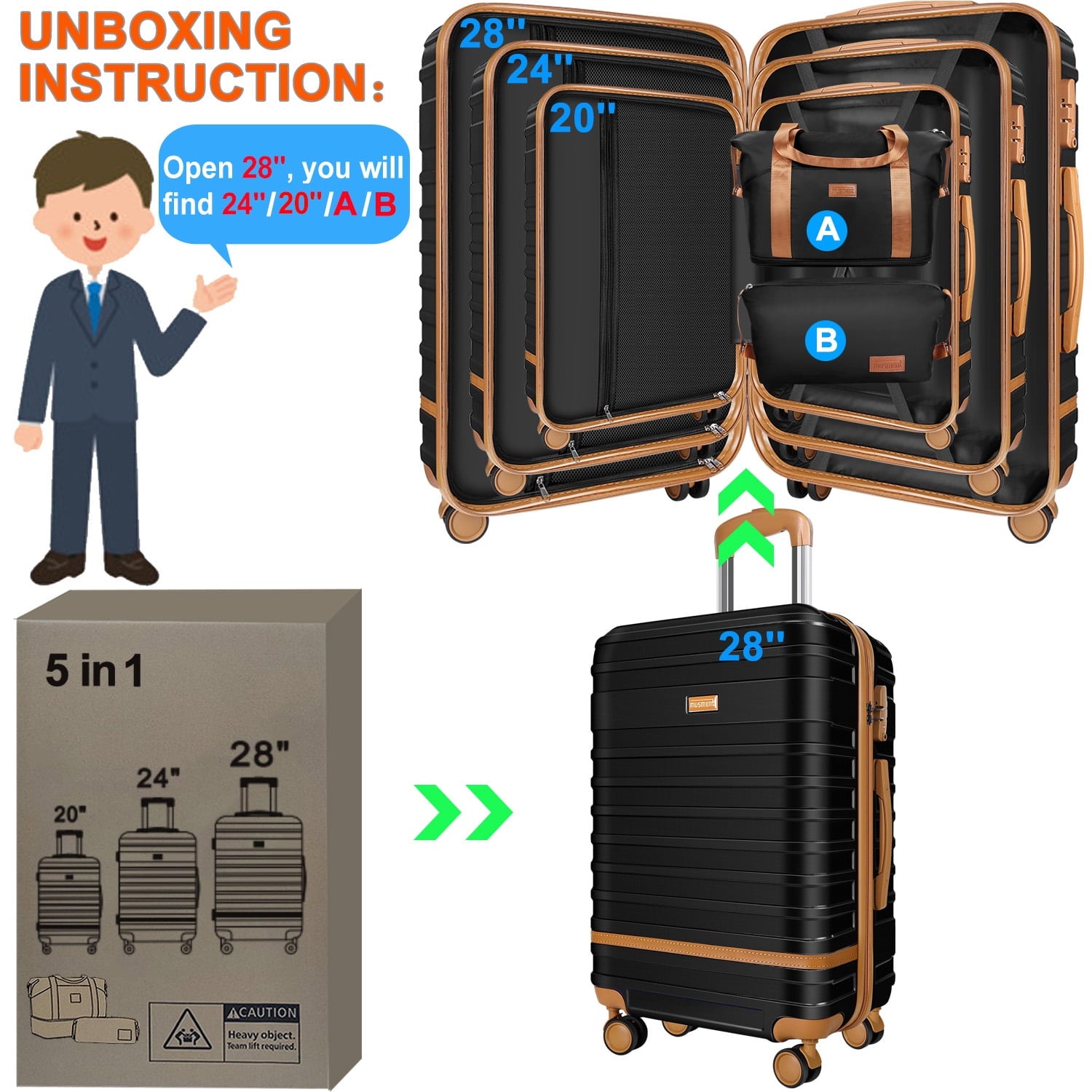 • Each set is shipped with each suitcase inside one another to save space for your convenience.