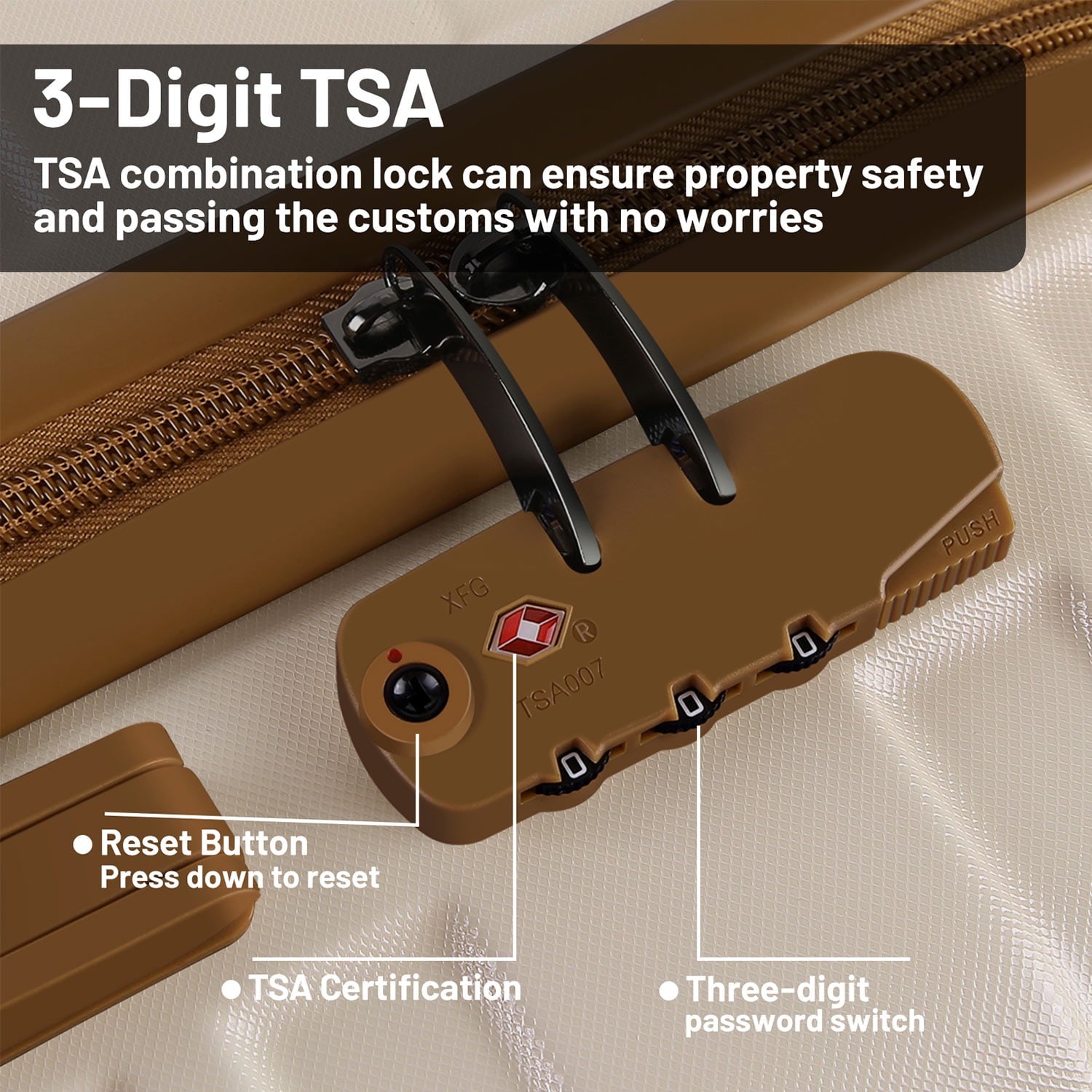 • [Double TSA Lock & Adjustable handle] – 3-Digit TSA combination lock helps keep your possessions safe and secure. An adjustable 3-step telescoping handle system, with an ergonomic grip Lock.