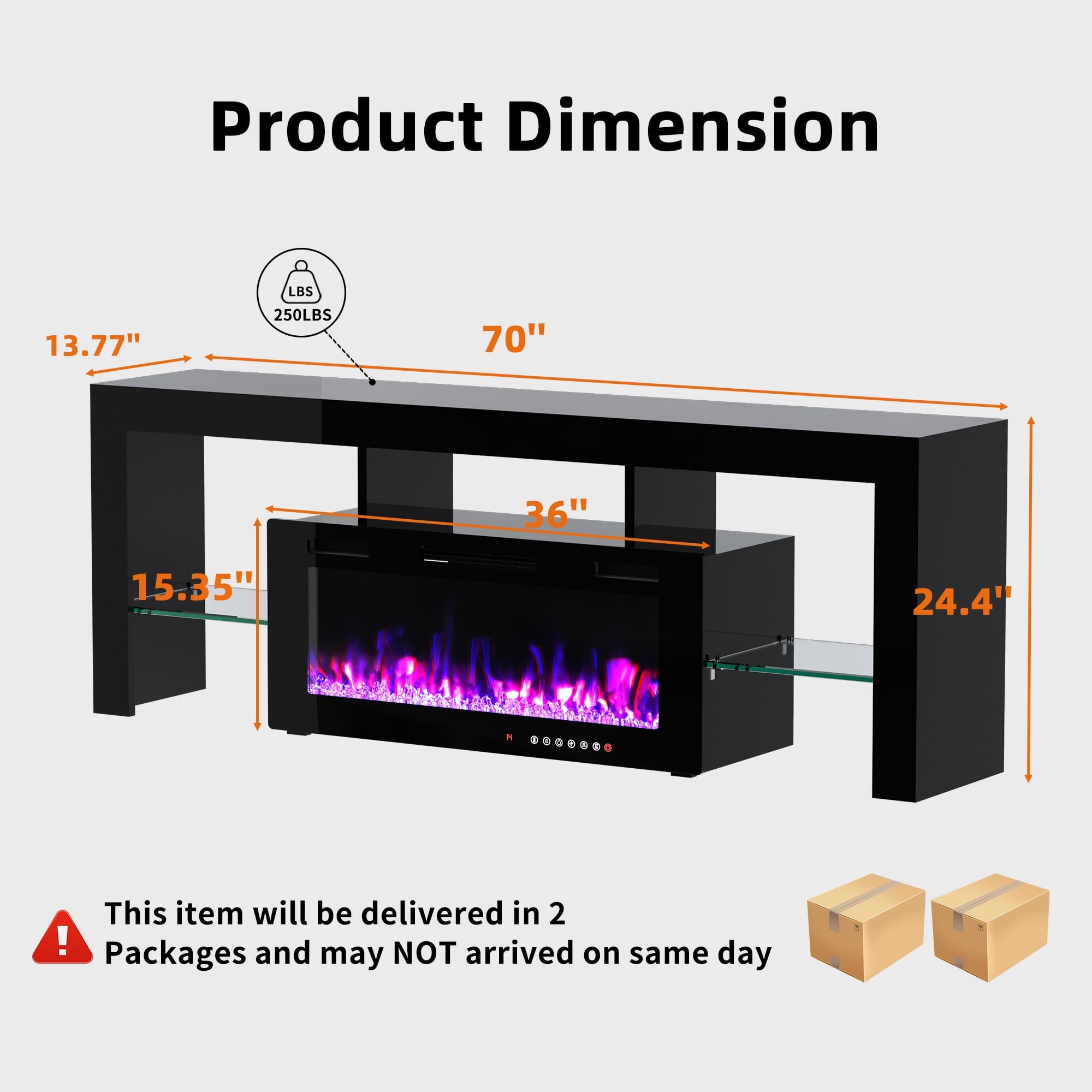 - 2-in-1 Multifunctional Design: This 70-inch TV stand features a built-in 36-inch electric fireplace, combining practicality and decoration to save space and complement modern home styles.