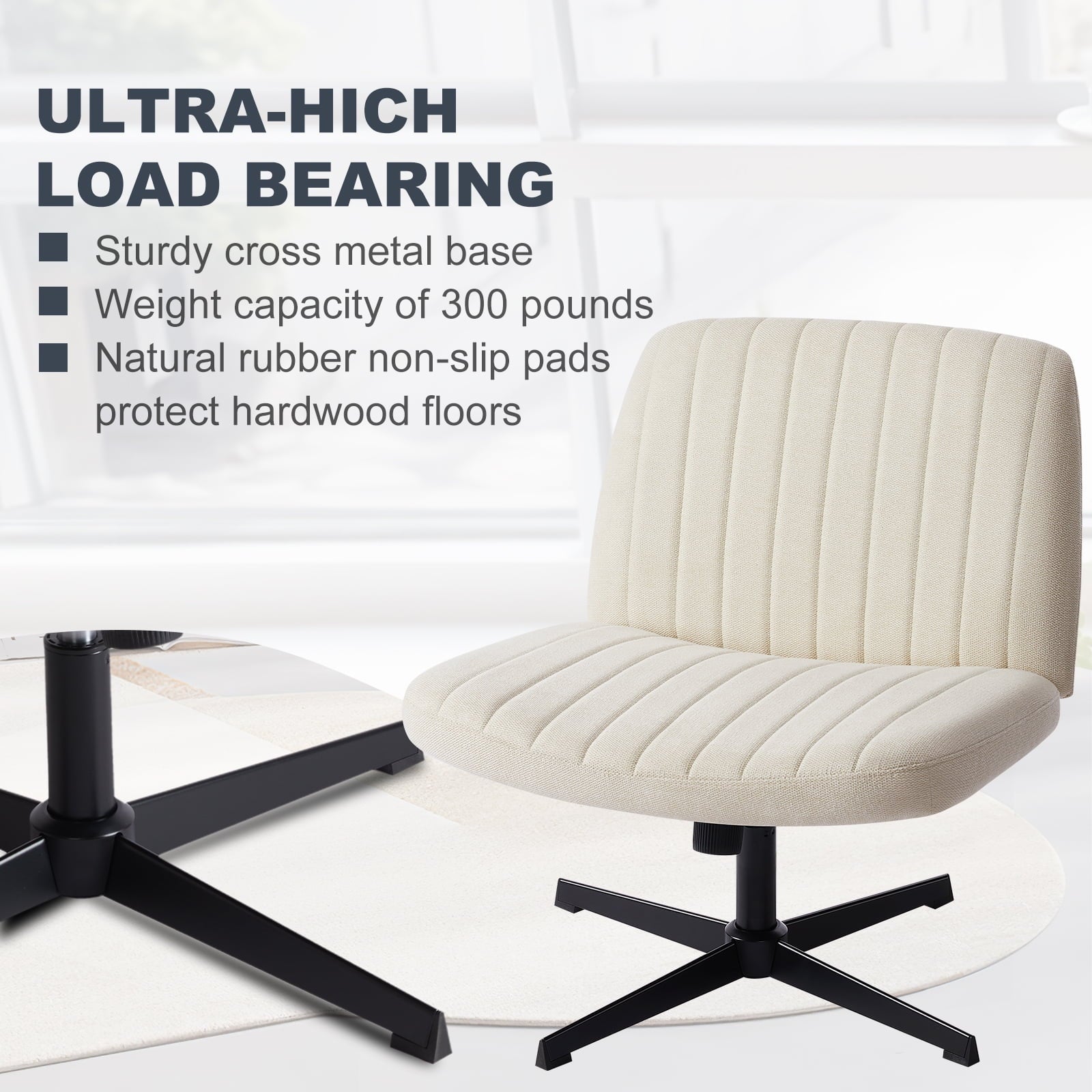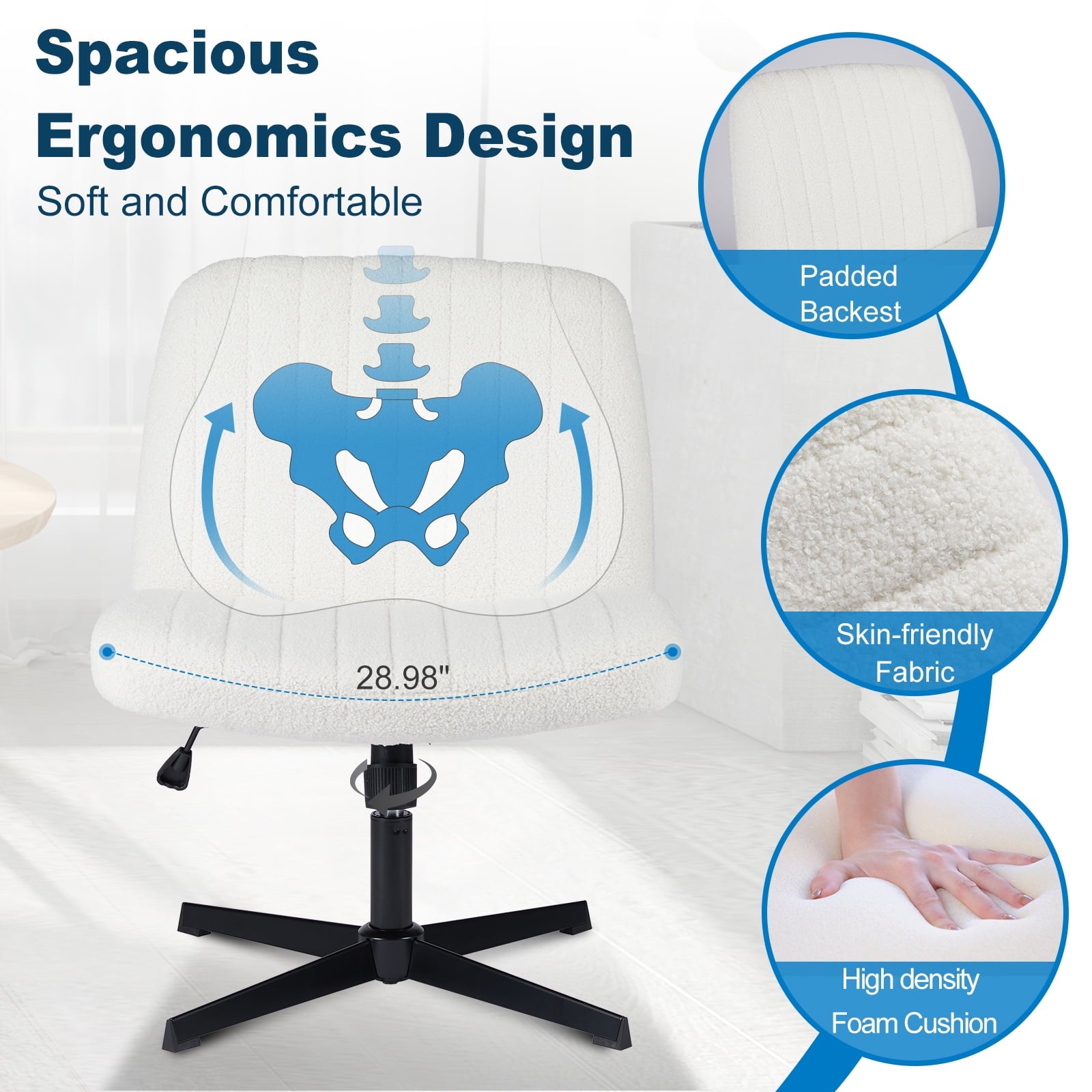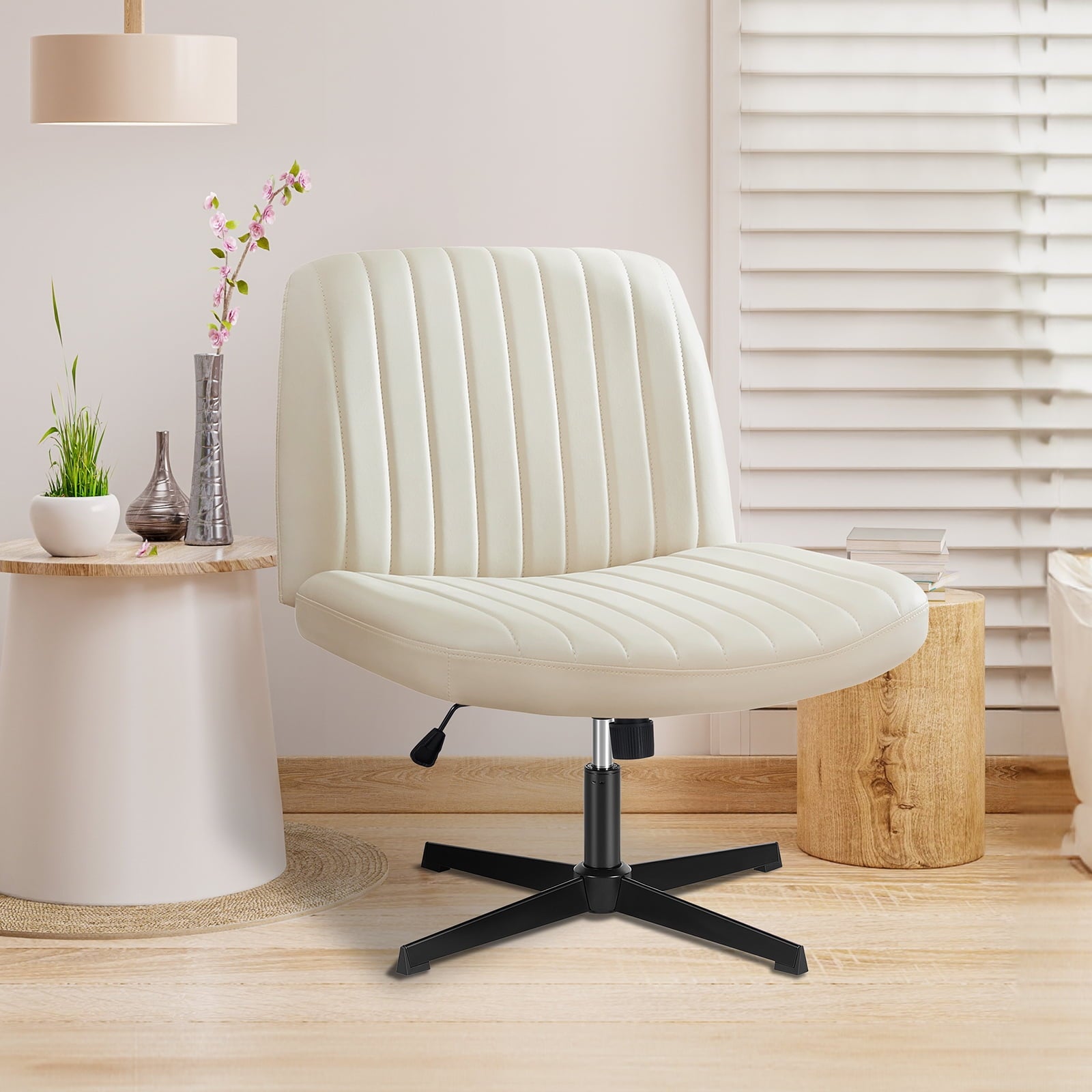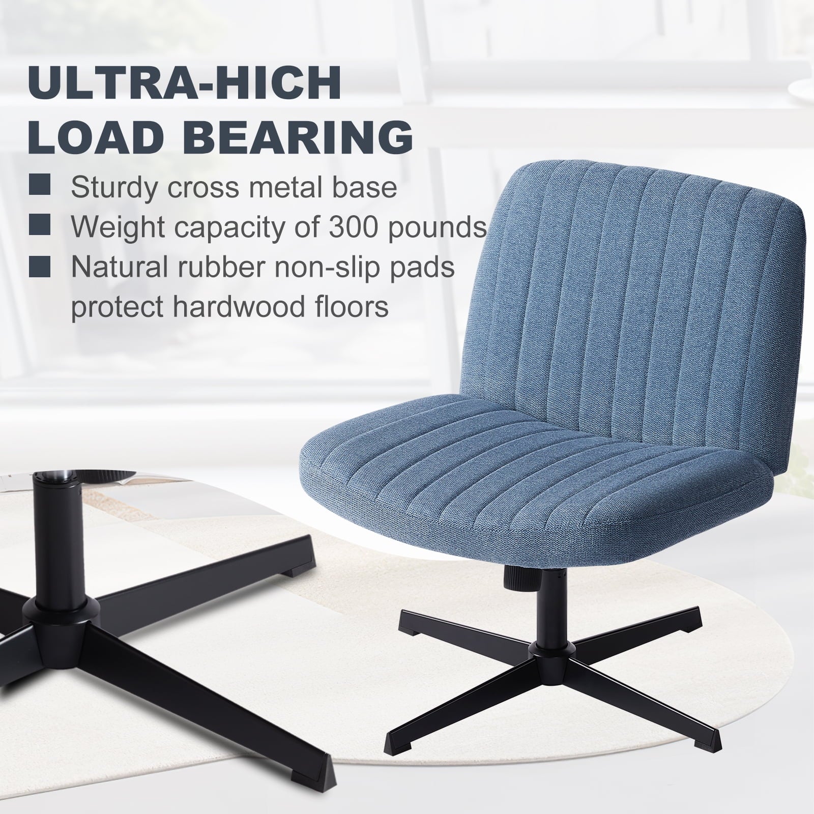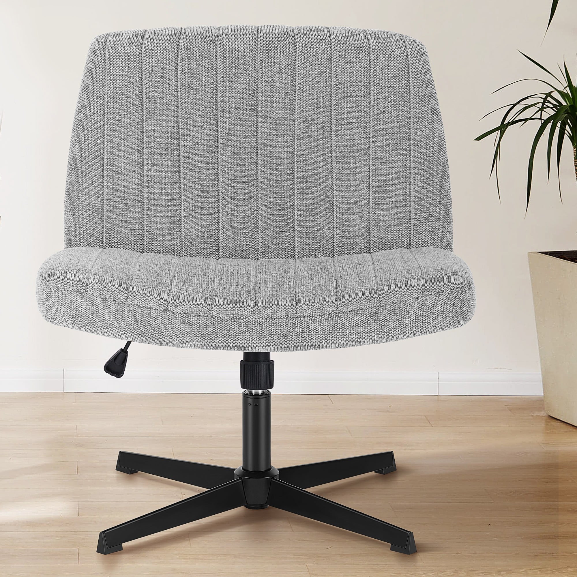 • [Sturdy & Stylish] – Built with an SGS-certified gas spring and a durable metal cross base, this chair supports up to 300 lbs. Its non-slip, scratch-resistant rubber feet provide stability and protect your floors. Unlike traditional office chairs, this modern cross-legged design and soft, skin-friendly fabric add a dynamic touch to any room. Perfect for your home office, living room, bedroom, study, or powder room.