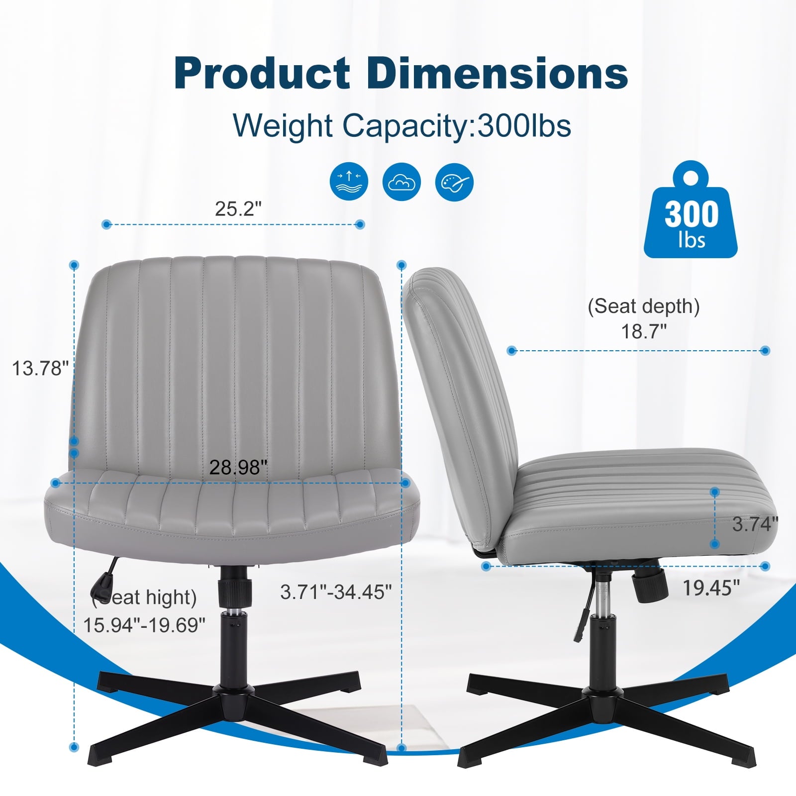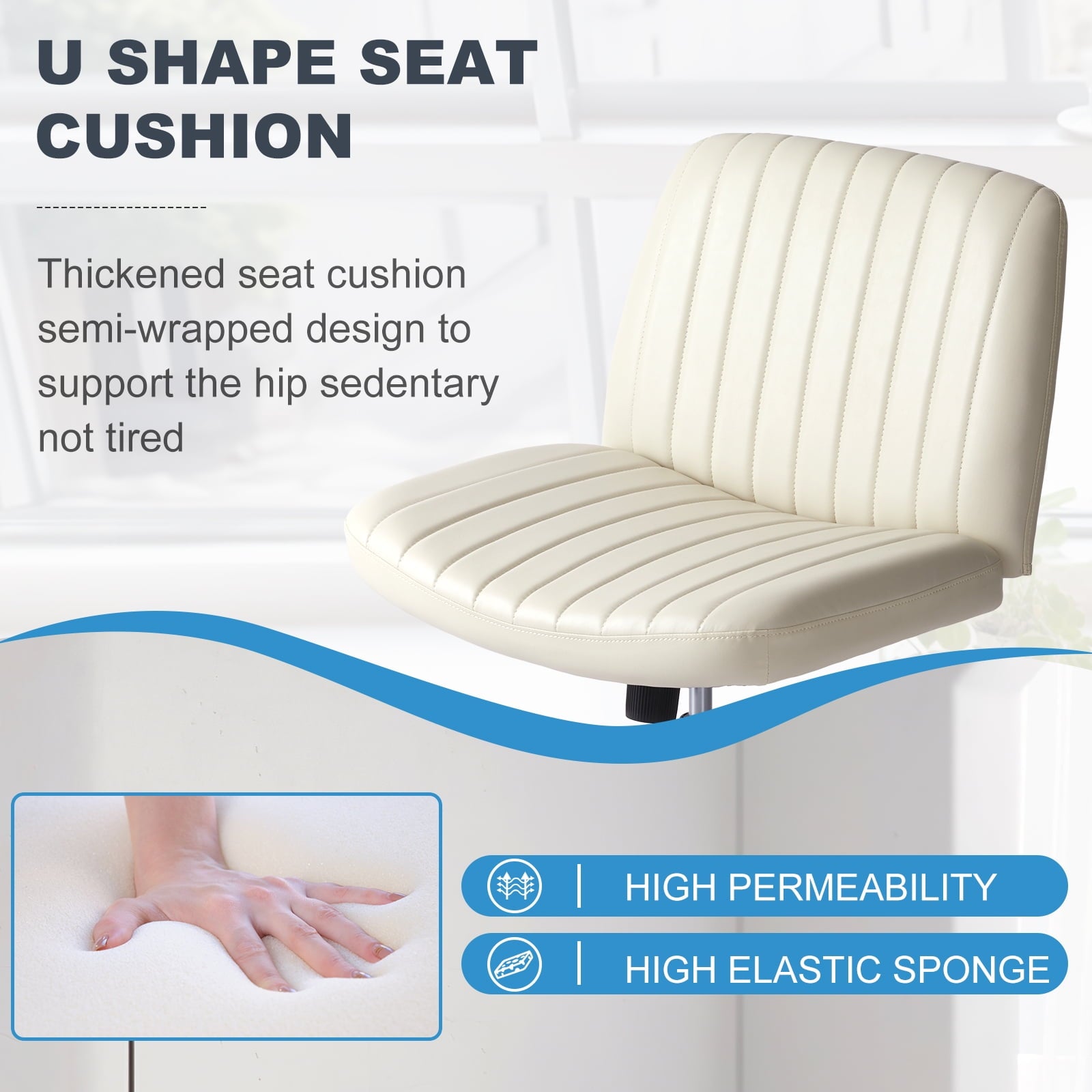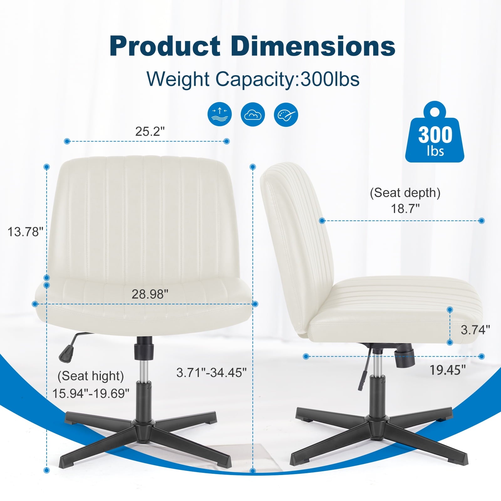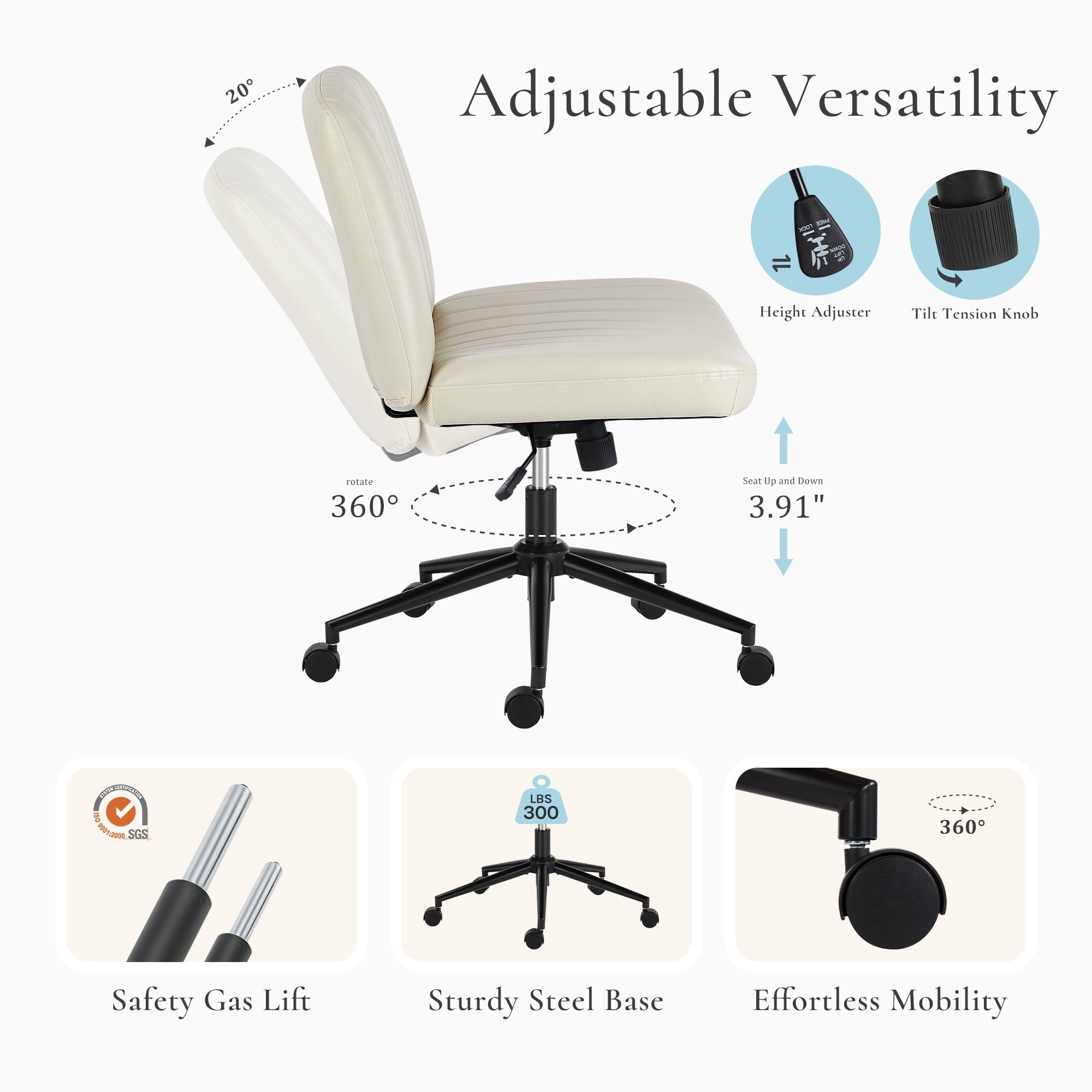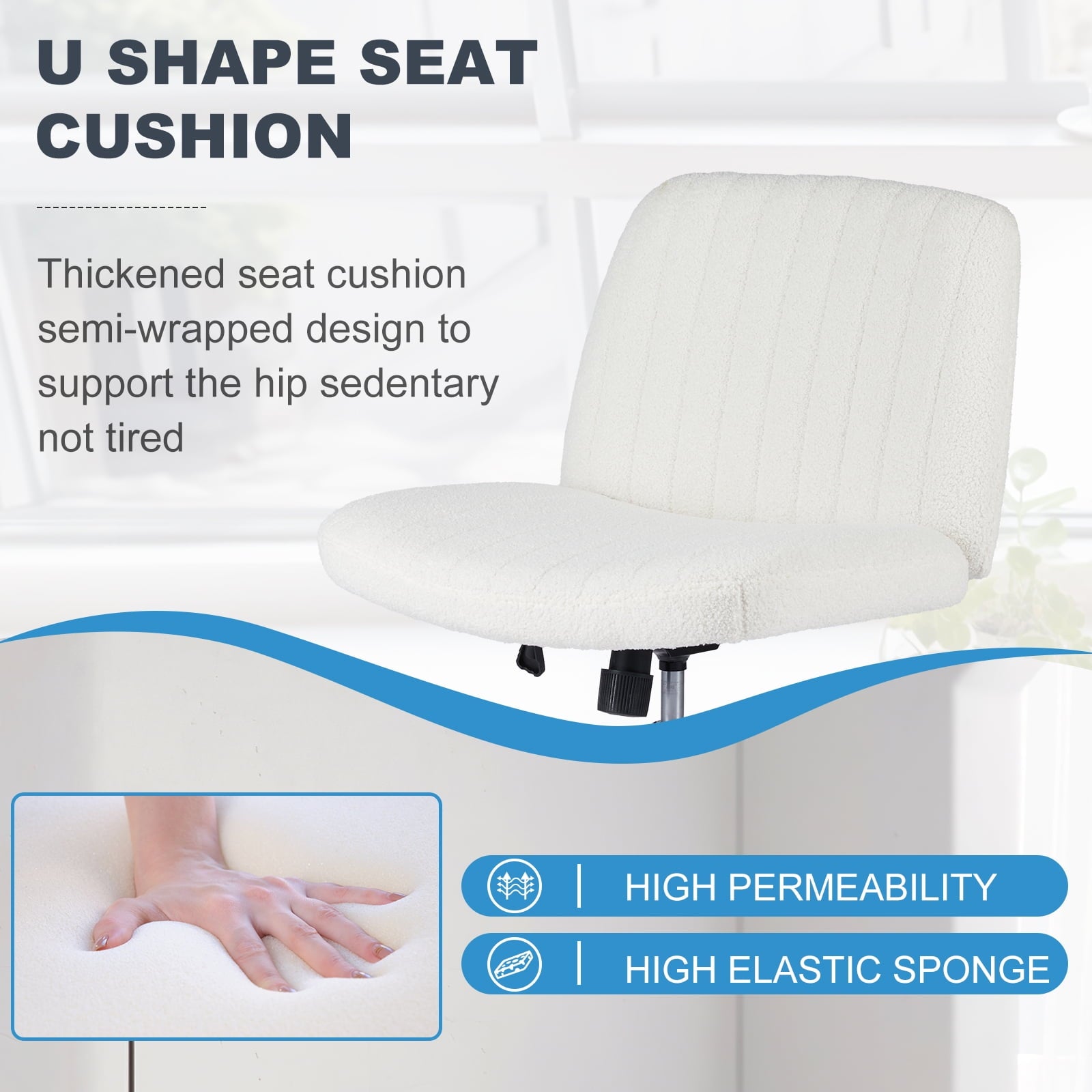 • [Sturdy & Stylish] – Built with an SGS-certified gas spring and a durable metal cross base, this chair supports up to 300 lbs. Its non-slip, scratch-resistant rubber feet provide stability and protect your floors. Unlike traditional office chairs, this modern cross-legged design and soft, skin-friendly fabric add a dynamic touch to any room. Perfect for your home office, living room, bedroom, study, or powder room.