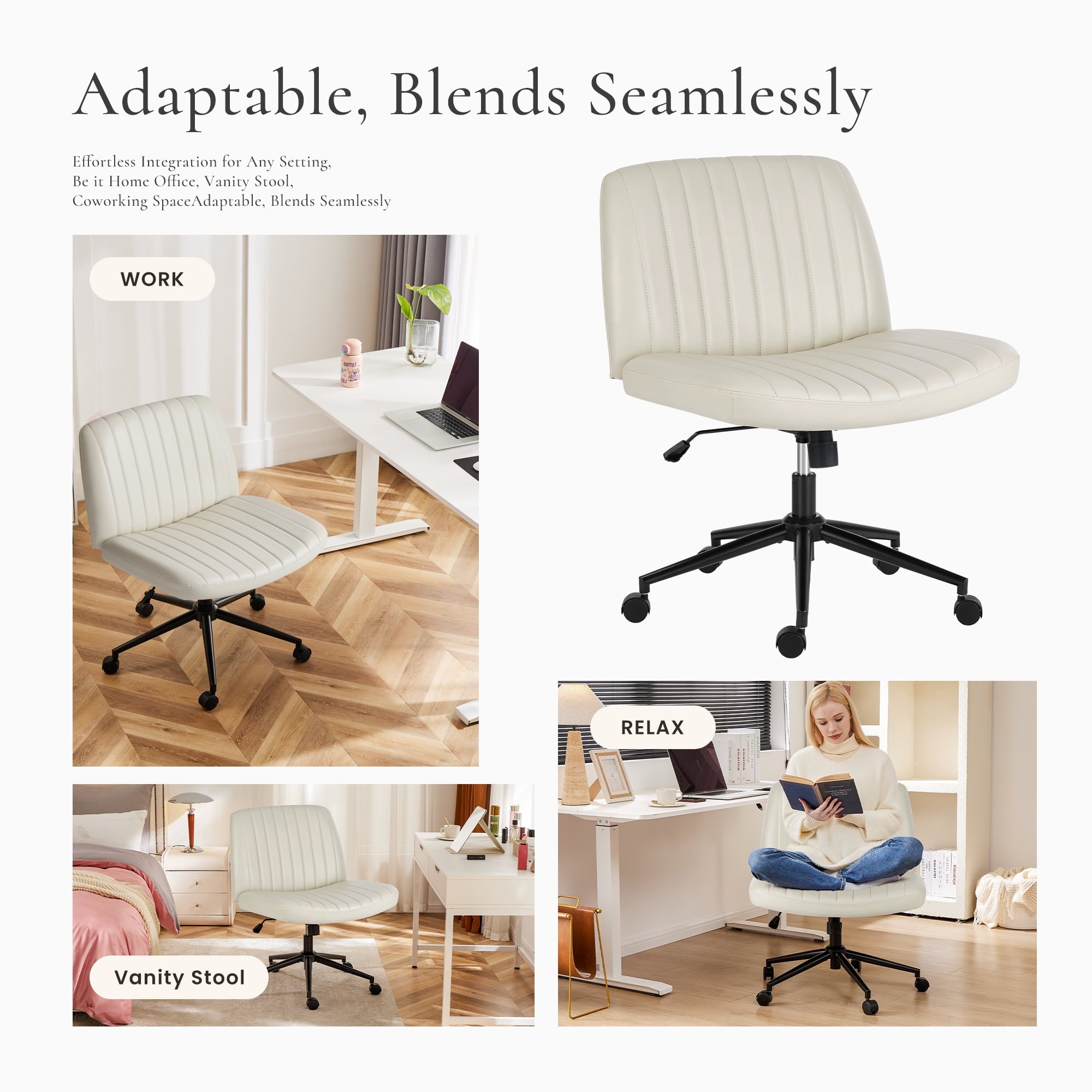 If you enjoy maintaining proper sitting posture and occasionally sitting cross-legged, this is the desk chair for you! This task chair is height adjustable, so it can be used with most tables. This armless desk chair’s seat can be turned 360°, providing you with a more convenient home office while saving space.Unlike traditional office chairs, this cross legged office chair’s innovative structural design can make your workspace more lively and unique. This wide office chair is an excellent choice that you should not overlook!