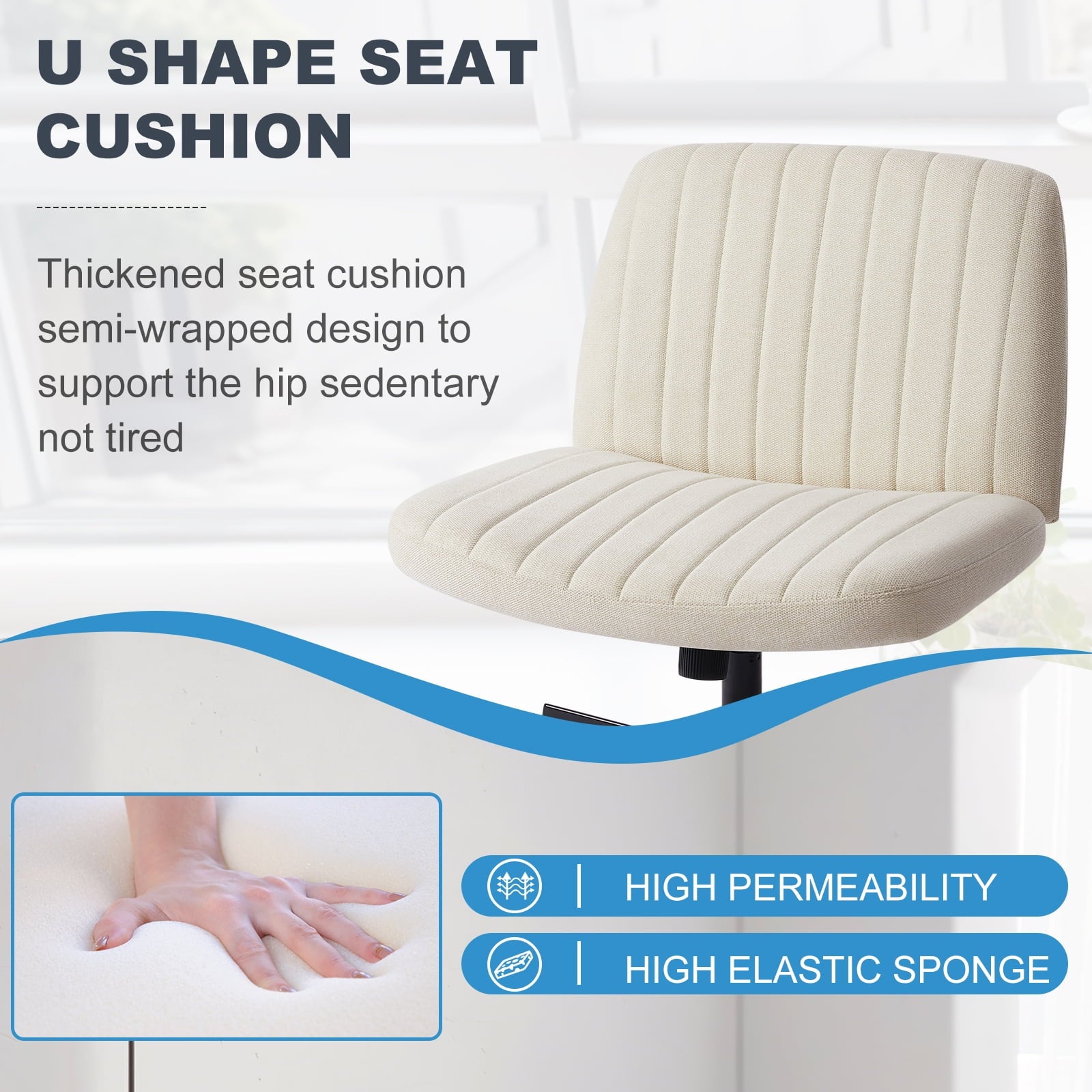 Home Desk Chairs Armless Criss Cross Legged Office Chair, Desk Chair No Wheels, Fabric, Beige