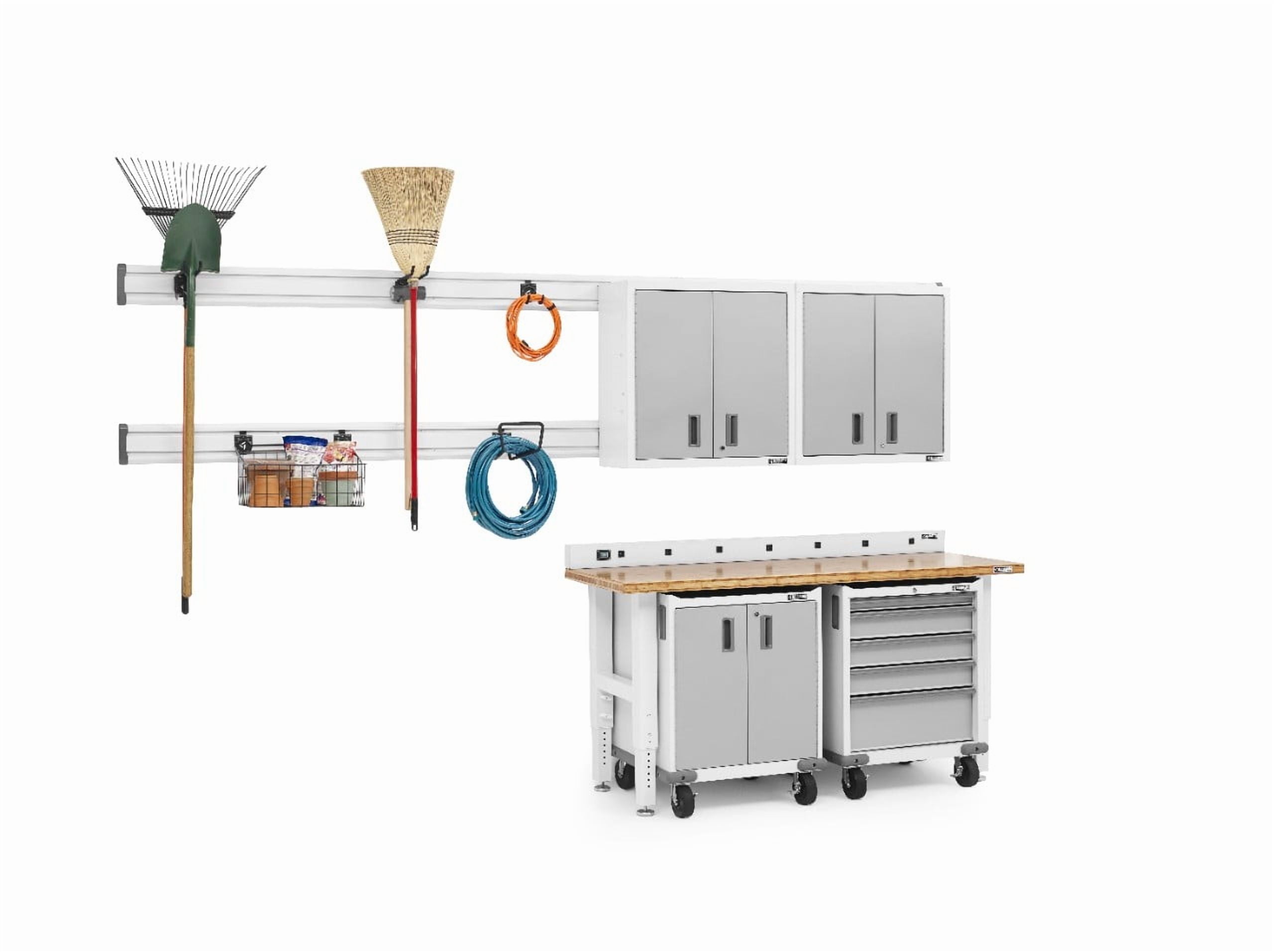 Storage and organization of smaller items is easy with the Gladiator® Accessory Starter Kit. Perfect for anyone looking to start getting space organized, this kit comes with an assortment of hooks and a basket, offering homeowners plenty of options for off-the-ground storage. Includes: (2) Tool Hooks, (1) Deep Hook, (1) Utility Hook, (1) 18″ Wire Basket