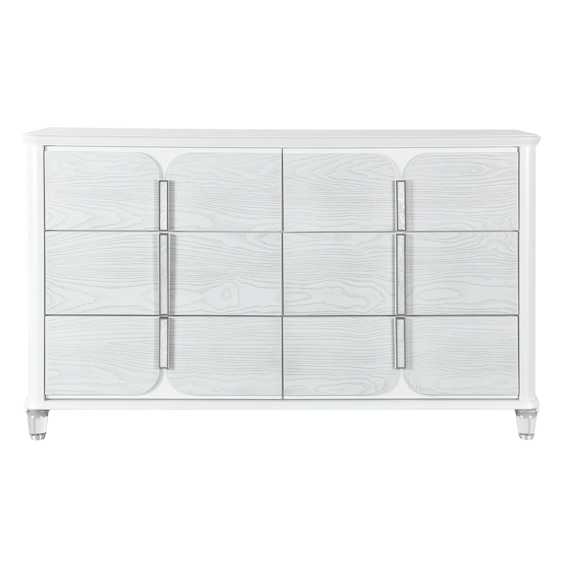 Transform your space with the Apollo Bedroom Collection by Global Furniture USA. This sleek ensemble, finished in light gray, features textured drawer fronts and acrylic legs, ensuring a modern, stylish appeal. With LED accent lighting on both the bed’s upholstered headboard and the mirror, this collection is designed to be a showstopper.