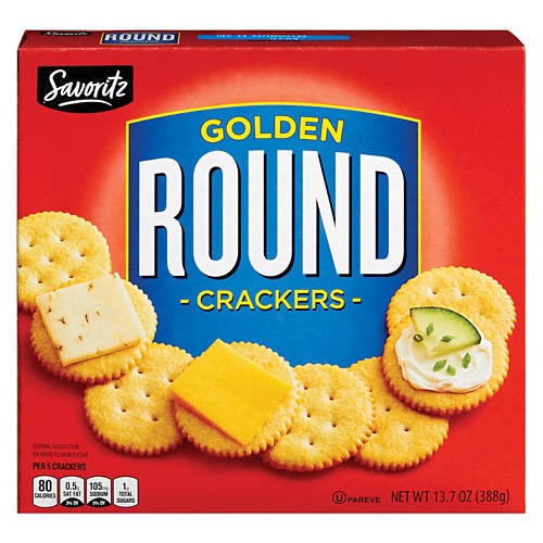 Savoritz Golden Round Crackers from ALDI are a crowd-pleaser and a classic go-to for any appetizer. Add your favorite cheese, sauce, meats, and more for a delicious one-bite snack.