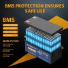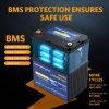 • [Superior Performance] Compared to conventional lead-acid batteries, our lithium batteries offer more than 10 times the cycle life due to the utilization of top-notch lithium batteries that provide unparalleled reliability and performance, with 4000-15000+ cycles. Moreover, the LiFePO4 battery is unaffected by the memory effect, enabling it to charge and discharge without reducing its capacity. (Note: the LiFePO4 battery can’t be used as starting battery)