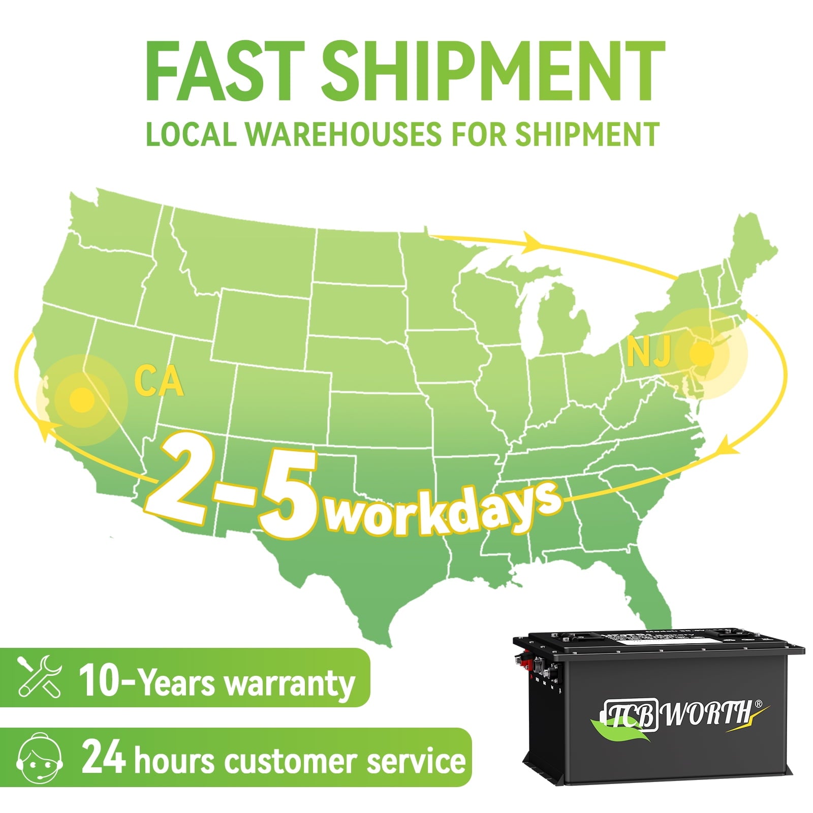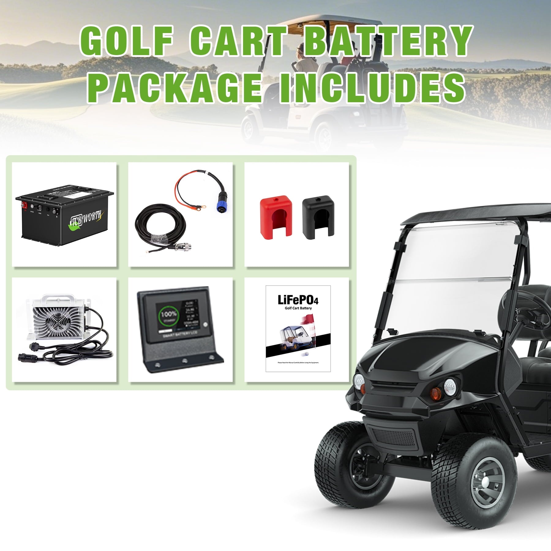 - 【Comprehensive Support】We provide 10 years-after-service for this 36V 105Ah Lithium golf battery with responsive and satisfying customer-service. A proper solution will be provided to any problem about the delivery, battery and the item’s quality within 24hrs in working days. TCBWORTH support team is on standby for YOU.