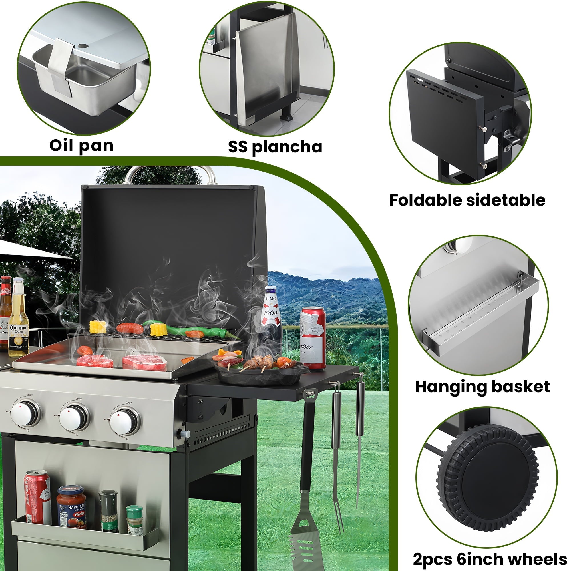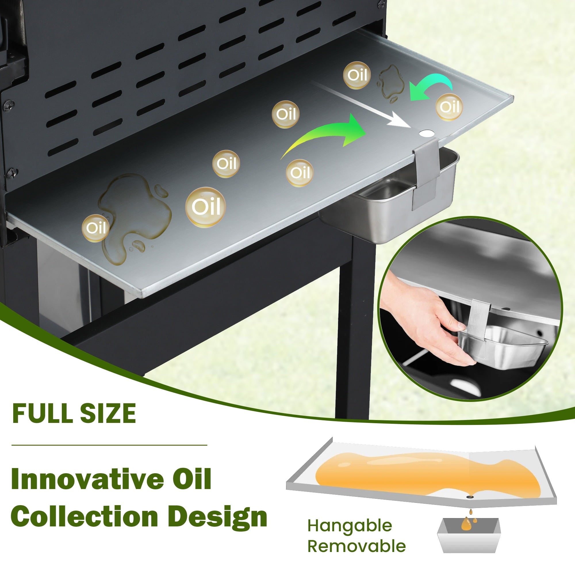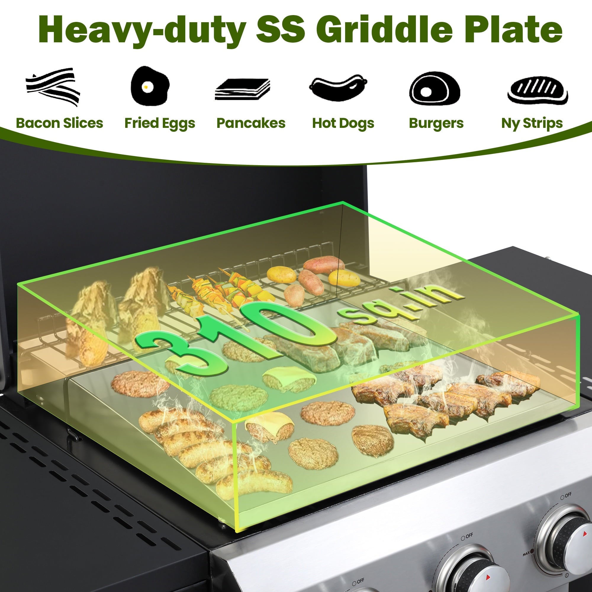 - 🔥 [Heavy duty construction]: The solid cabinet structure uses a reinforced frame for added stability, and the thickened cast iron grill and 2.5”T stainless steel plate have excellent thermal conductivity.