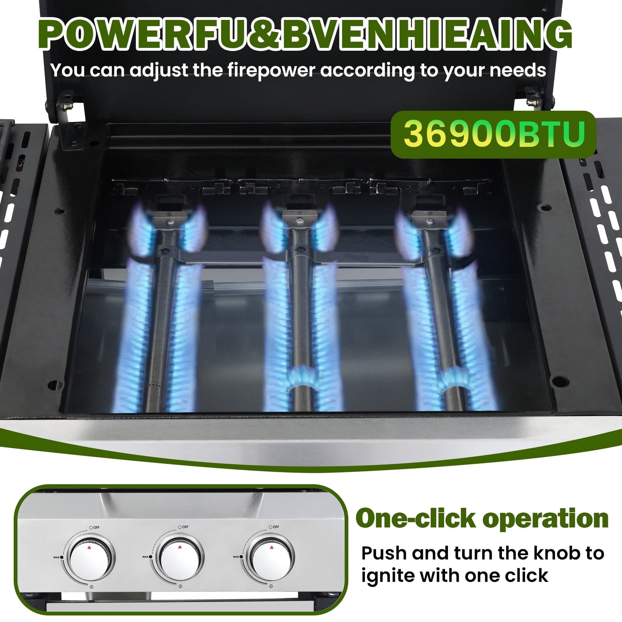 – 💥 [Quick Heat & Easy Control**: With 36,900 BTU 3-Burner propane gas heating system, enjoy rapid heat-up and customizable temperature zones to suit any dish.