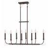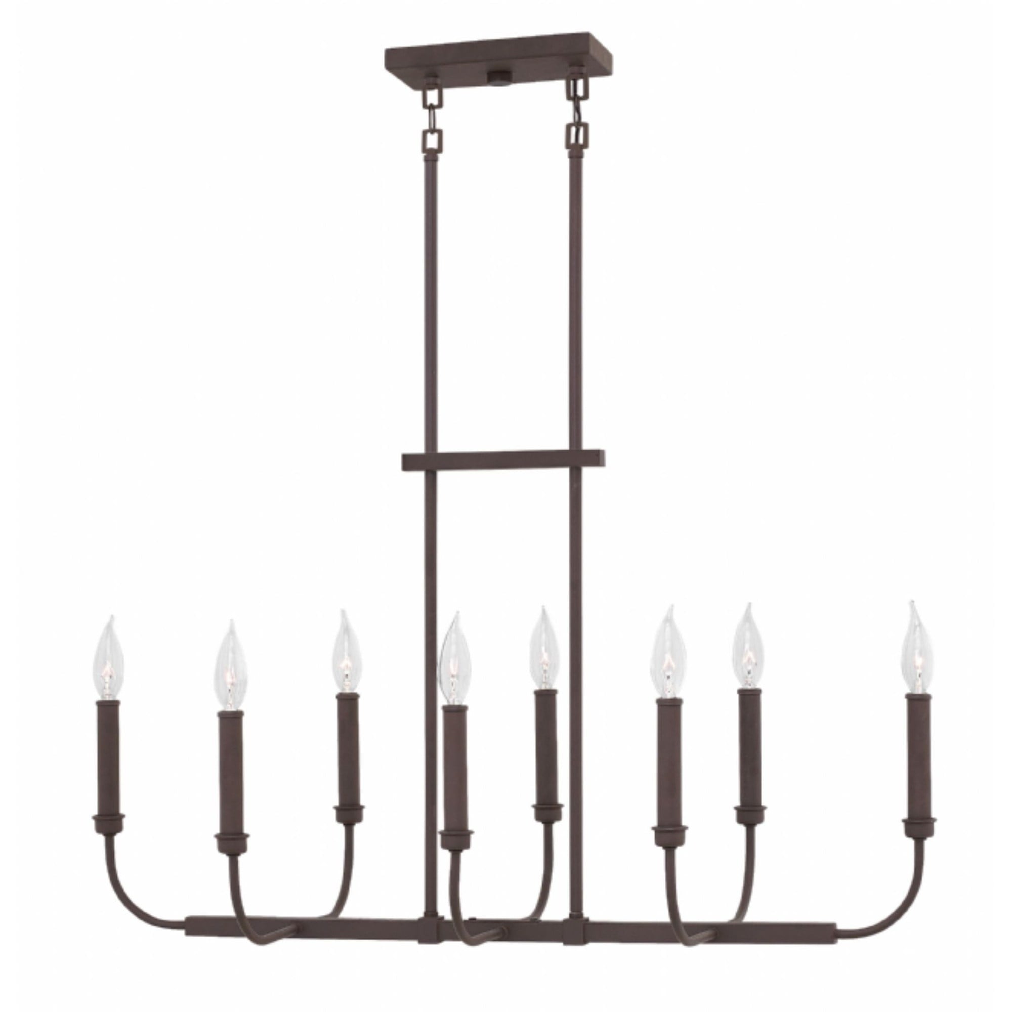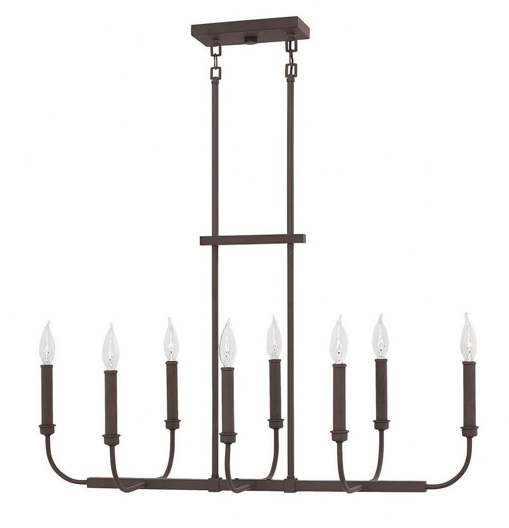 Hinkley Lighting-3074KZ-Collection: Alister, Material: Steel, Finish Color: Buckeye Bronze, Width: 14.4″, Height: 18.5″, Length: 14″, Depth: 14″, Lamping Type: LED, Number Of Bulbs: 8, Wattage: 60 Watts, Dimmable: Yes, Moisture Rating: Dry Rated, Desc: Chic minimalism is captured with Alister’s airy, open appearance. The streamlined, stem-hung design exudes sophistication, capturing both clean and classic lines in its timeless silhouette. Suitable for use in dry (indoor) locations as defined by NEC and CEC. Meets United States UL Underwriters Laboratories & CSA Canadian Standards Association Product Safety Standards / This fixture includes multiple down stems in various lengths to customize the installation height, including two 6″ stems and four 12″ stems. / Merging the best of traditional and modern elements, with a sophisticated and streamlined silhouette perfect for any space / Bold and robust dark bronze finish / Ideal for vintage filament bulbs (not included) Mounting: Included Down Rods – 2-6″, 4-12″ / Optional Add-Ons: Vintage filament bulbs,-Alister – Eight Light Linear Chandelier in Traditional-Transitional Style – 33 Inches Wide by 18.5 Inches High-Buckeye Bronze Finish